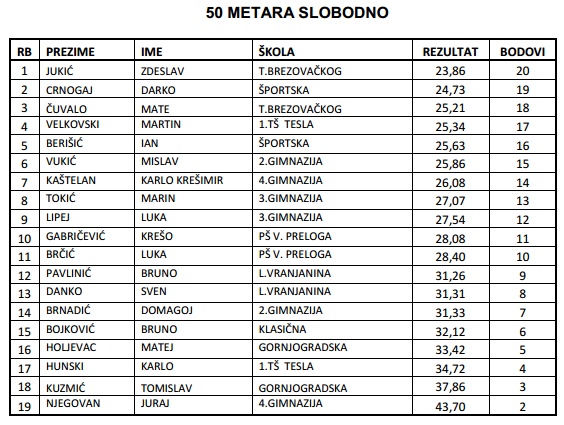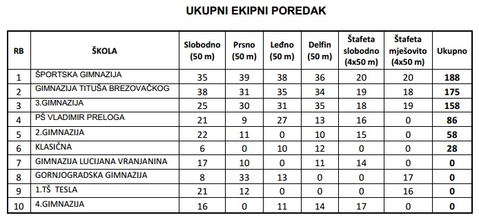 Mladići GTB-a osvojili drugo mjesto na Prvenstvu Zagreba za srednje škole u plivanju