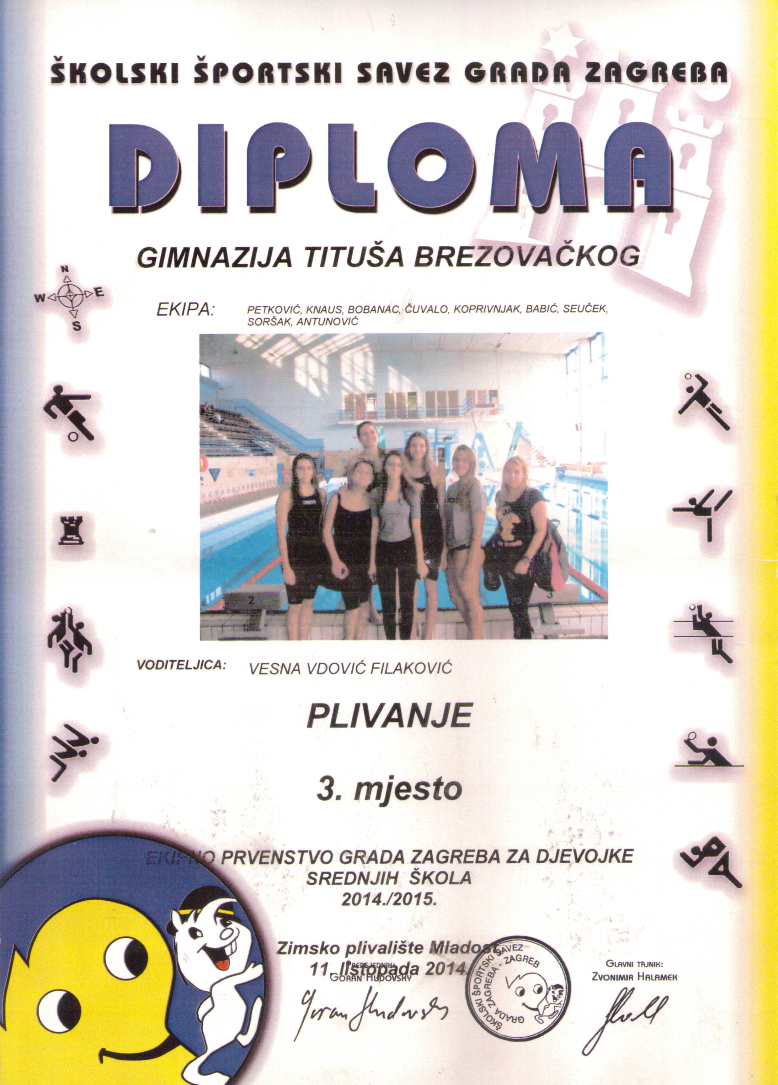 Čestitamo našim učenicama na ostvarenom trećem mjestu na Ekipnom prvenstvu grada Zageba za djevojke iz srednjih škola u plivanju!