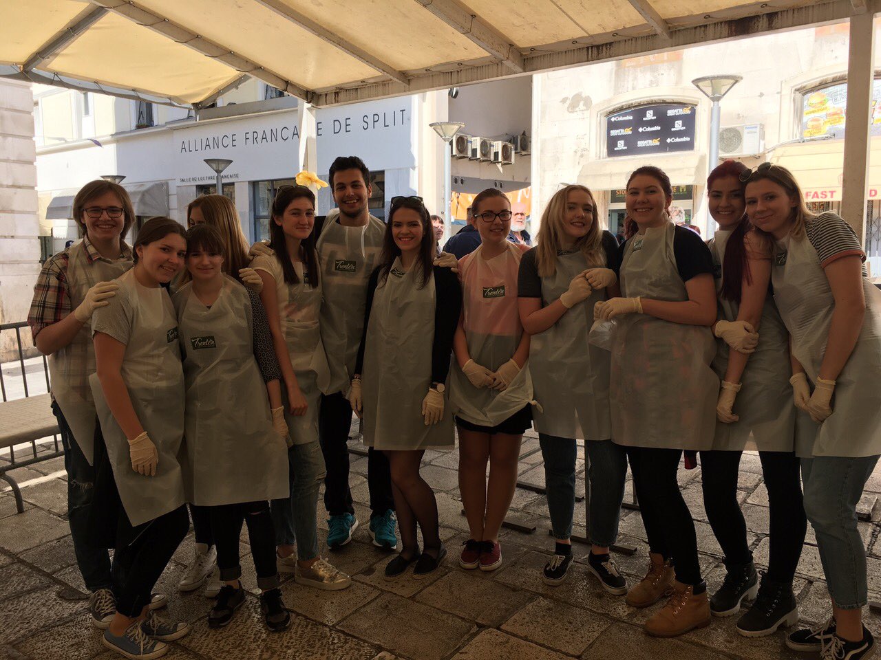 Ni ove godine proslava dana splitskog zaštitnika Sv. Duje, nije mogla proći bez vrijednih volonterskih ruku učenika 2.b, 2.e i 3.e razreda. Na gradskoj ribarnici pomogli su u dijeljenju delicija u sklopu Fešte spize i pića. Bilo je zabavno, pogledajte slike u "više"! Sunčika Kmošek Mimica