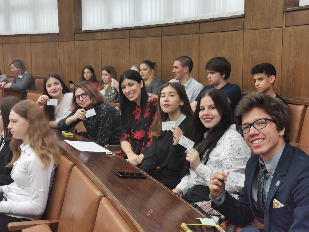 Ove su se godine među 138 saborskih zastupnika–učenika iz dvadeset tri školenašli i učenici 1.b razreda: Antonio Šimundža koji je održao upečatljiv zastupnički govor i istaknuo se aktivnošću i repliciranjem pa smo ga imali priliku gledati i na Dnevniku, Lana Luna Valtrović, Gea Bilan, Anisia Banović i Asja Skalić Acuna. Njihova mentorica bila je prof. Dijana Mišetić, a kao pratnja i potpora s galerije bodrile su ih ravnateljica prof. Ankica Kovač,Lucija Tokić kao učenica-gošća i Ivan Jukić kao školski novinar.