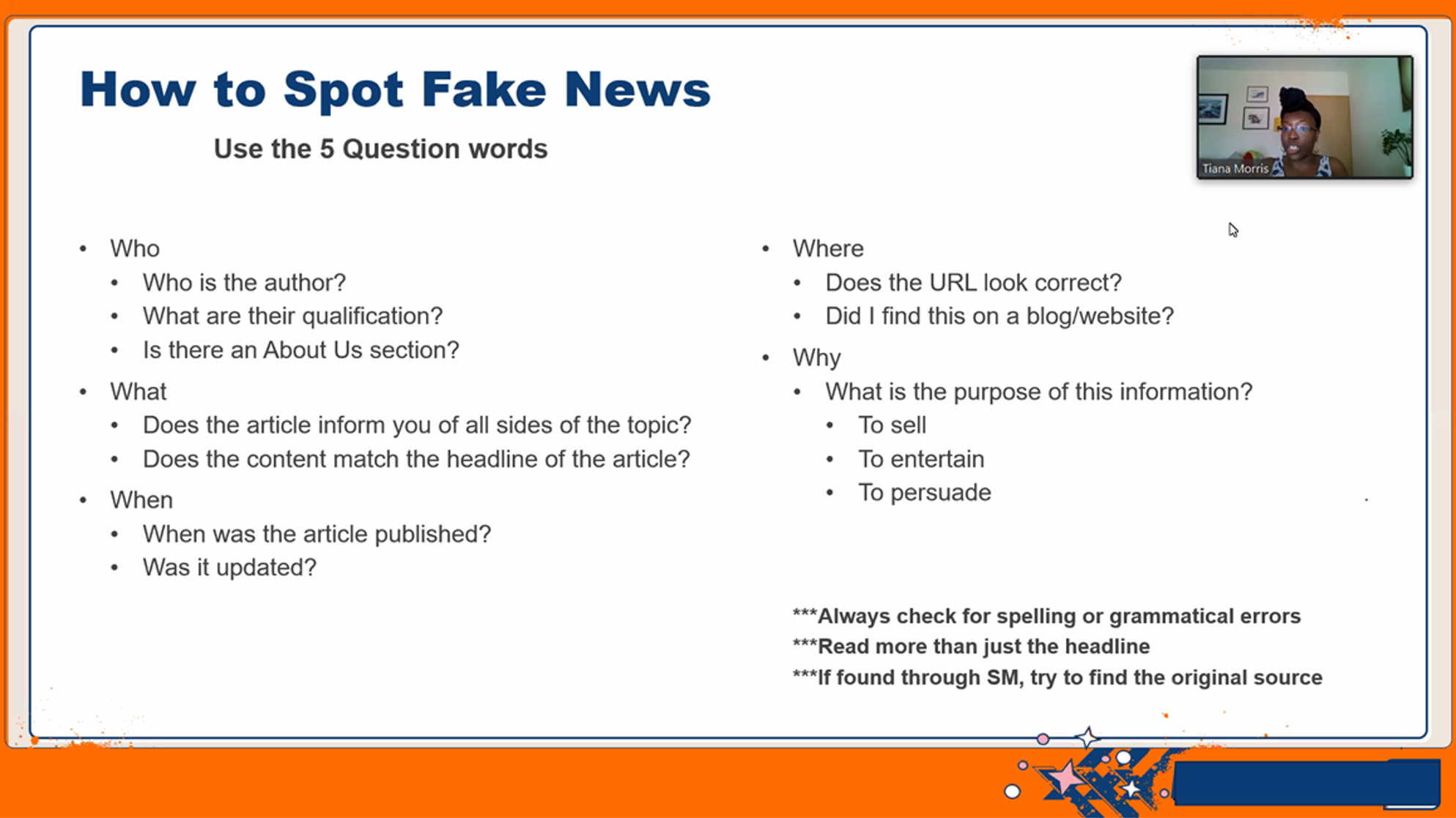 Učenici Gimnazije Sesvete sudjelovali su na zoom webinaru s Amerikankom, Fulbright stipendisticom, mr.sc. Tianom Morris pod naslovom Media litercy. Razgovarali smo o negatibnim stranama medija i oscijestili važnost medijske pismenosti, naučili pet pitanja koje možemo sami sebi postaviti i tako otkriti čitamo li 'fake news', te se upoznali s web stranicama na kojima možemo provjeriti točnost informacija s kojima se susrećemo.
