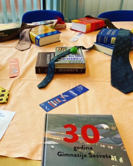 U školskoj smo knjižnici hrvatske rječnike izložili učenicima na razgled i listanje, a njih vezali kravatom, kao hrvatskim simbolom uz Svjetski dan kravate. Obilježava se od 2008. godine različitim programima diljem Hrvatske. Danas ima značajnu povijesnu, simboličku i kulturološku vrijednost, kao snažan simbol hrvatskoga identiteta. Kao izvorni hrvatski proizvod kravata se raširila Europom u 17. stoljeću posredstvom hrvatskih vojnika, na kojima je postala prepoznatljiv modni detalj. Kravata je u početku bila naziv za rubac oko vrata po kojem su bili prepoznatljivi hrvatski vojnici koji su se pod francuskom zastavom borili u Tridesetogodišnjem ratu (1618. – 1648.). Ovaj je „modni“ detalj izazvao veliko zanimanje Parižana koji su oduvijek bili zainteresirani za kvalitetne novitete na području odijevanja.