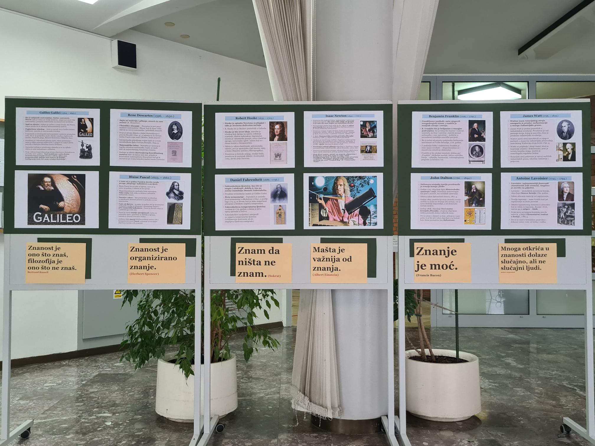 Pogledajte naše fotografije sa izložbe i pokus s Teslinim transformatorom koji je pripremila prof. Tatjana Zemljić s učenicima, a u prilogu pročitajte više o znanstvenicima.