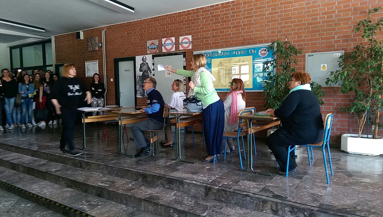 Razrednici četvrtih razreda svojim su maturantima za oproštaj izveli kratku predstavu u kojoj su predstavili sve vedre strane svoga posla i tako zabavili učenike škole. MATURANTI, SRETNO!