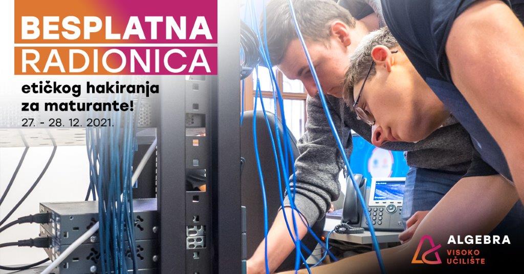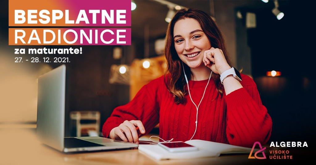 ovim putem želimo vas izvijestiti kako će Algebra tijekom zimskih praznika (27. i 28. 12.) provoditi besplatne dvodnevne radionice za maturante koje će vam omogućiti stjecanje znanja i vještina relevantnih za razvoj karijera u izazovnim digitalnim vremenima. Prijave traju do 10. prosinca 2021. Na raspolaganju su vam sljedeće radionice: