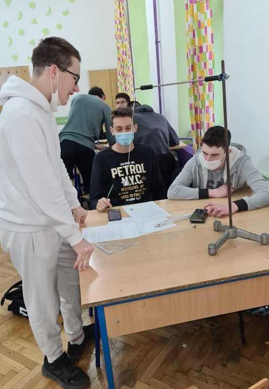 Učenici 3. e su izvodili istraživanje pomoću Phet simulacije, a učenici 3. 5 su vršili mjerenja u laboratoriju vođeni istim listićem koji ih je vodio kroz istraživački usmjerenu nastavu. Nakon provedenih istraživanja usporedili su svoje rezultate i uz komentare došli do zajedničkog zaključka. Nakon toga istaknuli su prednosti istraživanja fizičkih pojava pomoću simulacije na računalu i izvođenja pokusa pomoću laboratorijskog pribora. Popunili su izlaznu anketu gdje se većina učenika izjasnila da im se sviđa ovakav zajednički sat i da bi željeli ponoviti takav sat.