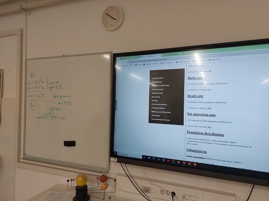 U četvrtak, 17. listopada 2024. održan je ogledni sat iz predmeta geografija u 2.c razredu. Učenici su rješavali računske zadatke na temu demogeografije (opće kretanje stanovništva). Sat je održala Mila Bartulović Bednjanec, a na satu su bile nastavnice geografije Iva Starčević i Zrinka Gracin.