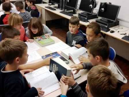 U nastavnom programu hrvatskog jezika u 3. razredu je korištenje enciklopedije i pritom se učenike potiče na pronalaženje tražene obavijesti u enciklopediji služeći se kazalom i abecednim redom. Učenici 3. b su, pri ostvarivanju ovih sadržaja, 13. listopada 2015. posjetili Dječji odjel NKČ Vlado Gotovac Sisak i upoznali različite enciklopedije, leksikone, pravopise iz knjižnične referentne zbirke. Knjige iz referentne zbirke knjižničari ne posuđuju za van tako da ih učenici mogu koristiti samo u prostoru knjižnice (školske ili gradske). Stoga su učenici u školskoj informatičkoj učionici upoznati s nekoliko različitih online pretraživača kojima mogu pristupiti u trenutku kada im je potrebna određena informacija, s različitih medija koji su spojeni na internet. Ovakvim pristupom pronalaženju informacija učenici su povezivali sadržaje čitalačke i informacijske pismenosti, razvijali osnovne informacijsko-komunikacijske vještine i sposobnosti, što je temelj razvoja (danas vrlo važne) digitalne kompetencije.