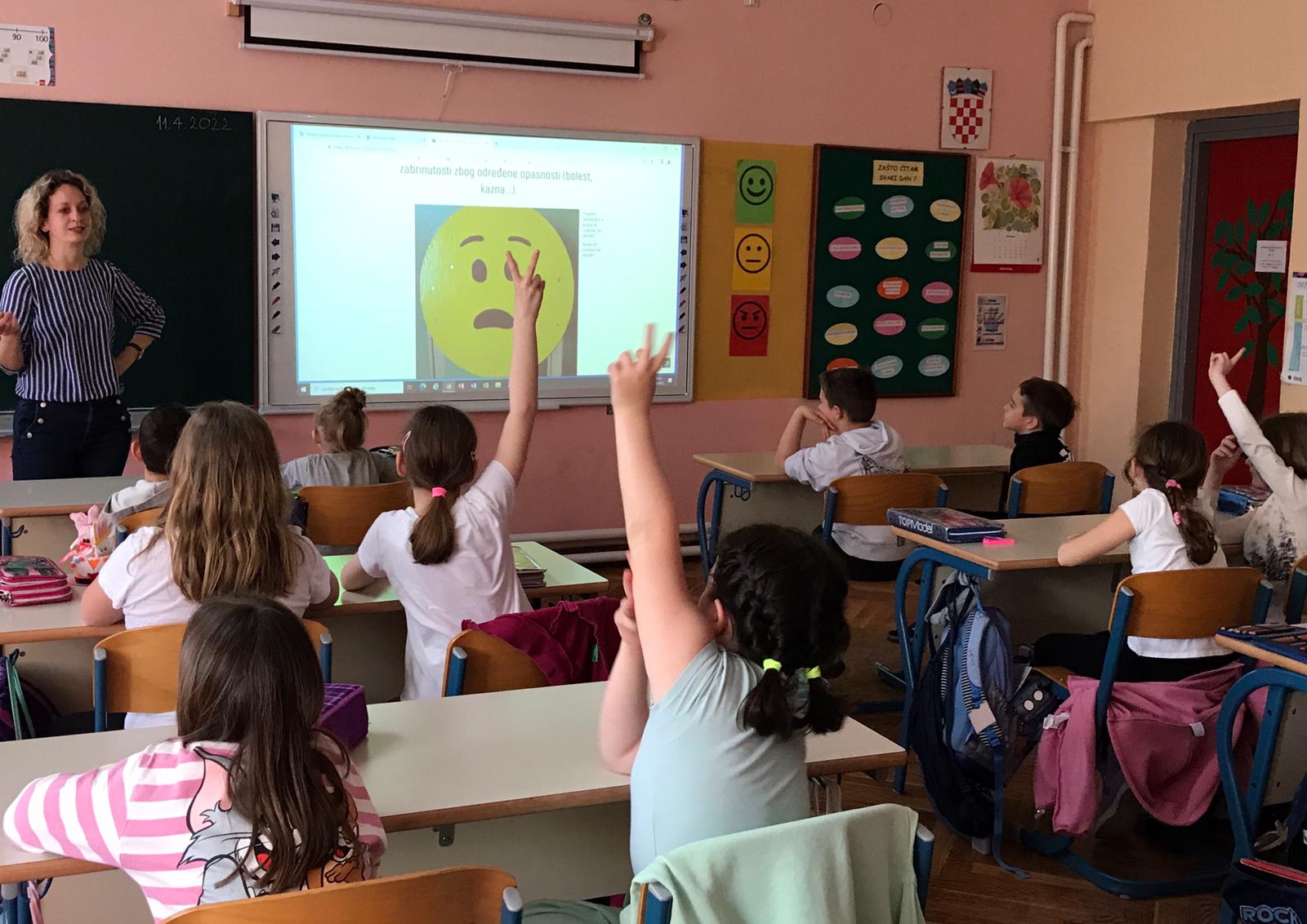 Emocionalna pismenost je školski projekt unutar kojeg učenici razgovaraju o ugodnim i neugodnim osjećajima, uče prepoznavati, imenovati i razumijeti svoje i tuđe osjećaje te izraziti ih. Radionicu na temu Kako se razvijaju naši osjećaji i kako ih izražavamo održala je pedagoginja škole u 2.b i 1.b odjelu. Učenici su razgovarali o osnovnim ljudskim osjećajima sreće, tuge, ljutnje i straha te su izradili emotikone za navedene osjećaje pomoću kojih mogu pokazati kako se osjećaju u određenoj situaciji.