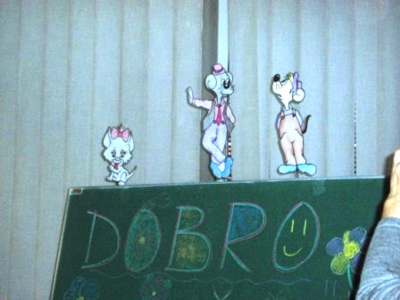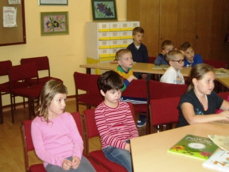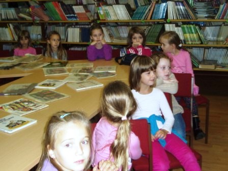 Učenici prvih razreda posjetili su školsku knjižnicu. U knjižnici su ih dočekale učenice 5.a razreda Paula Đurić, Nera Grahovac i Laura Kristić koje su za njih izvele igrokaz Miš u knjižnici. Prvašići su s velikim zanimanjem slušali što im mišiće govore te su naučili kako se trebaju odnositi prema knjigama. Knjižničarka Jasna Bošković upoznala ih je s pravilima ponašanja u knjižnici, a zatim su posudili svoju prvu lektirnu slikovnicu, 1.a Male priče o velikim slovima, a 1. b Slikopriče. Sada otkrivaju što se krije na oslikanim stranicama posuđenih slikovnica.