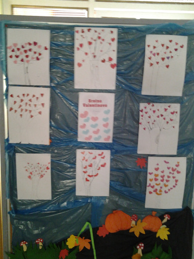 Sretno Valentinovo! Tehnika: tuš-drvce; kolaž papir.