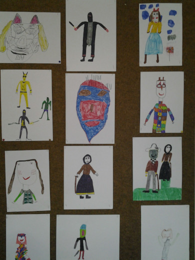 Likovni radovi na temu "Maškare". Tehnika: flomasteri.