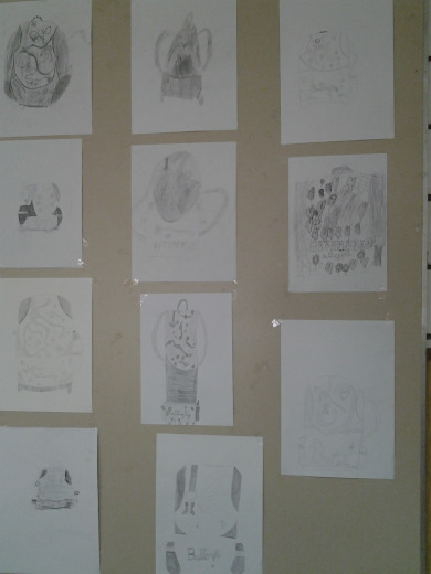 Motiv: Školska torba. Tehnika: olovka. Kontrast crta po karakteru.