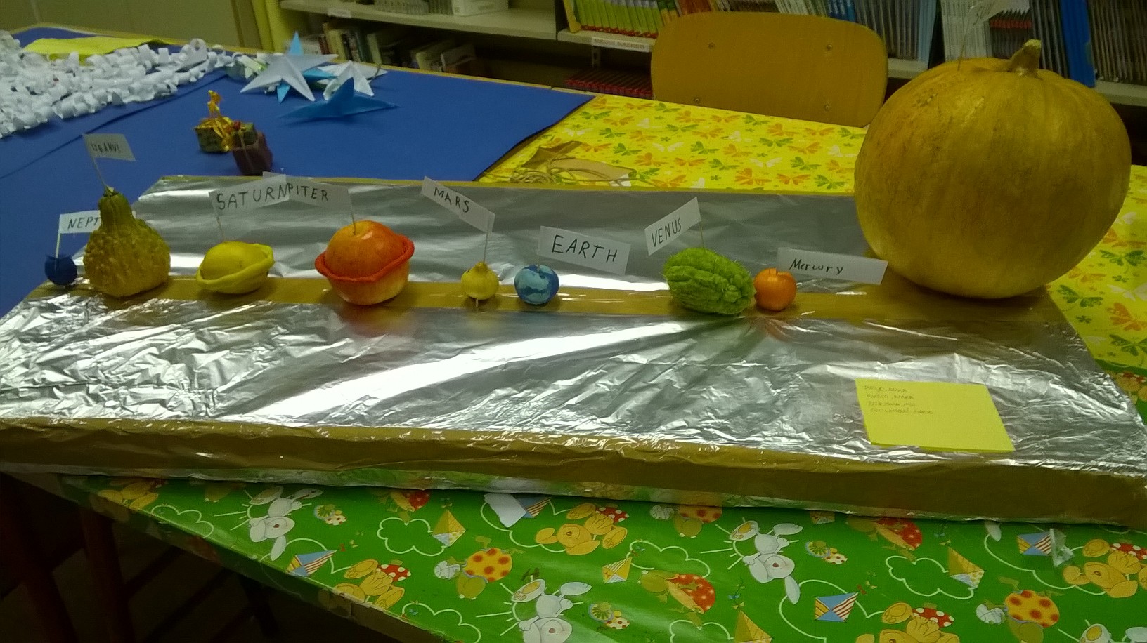 Na satima engleskog jezika naši su petaši učili o Sunčevom sustavu i planetima koji njemu pripadaju. Za zadaću su dobili zadatak izraditi makete Sunčevog sustava na način na koji oni žele i mogu te svaki planet označiti njegovim imenom na hrvatskom i engleskom jeziku.