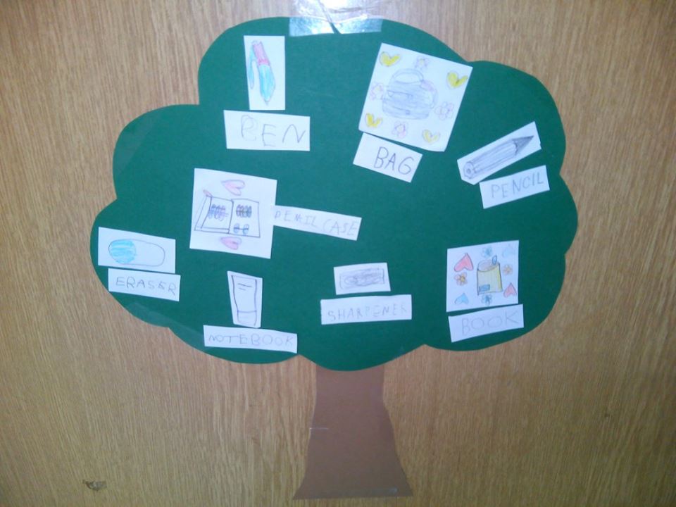 Naši prvašići su počeli preslikavati riječi na engleskom jeziku. Učili su riječi za školske predmete i napravili School Tree s njima.
