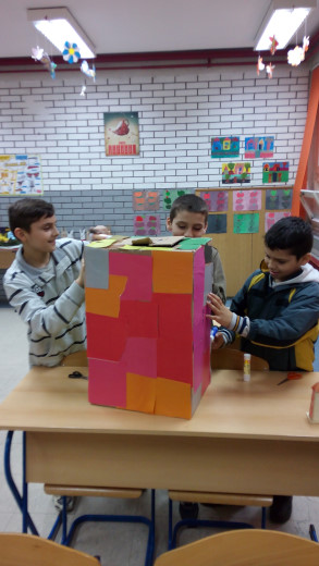 "Članovi eko skupine sa svojim voditeljem, učiteljem Petrom Ivanković, pripremaju se za Uskršnji sajam. Vrijedno izrađuju prigodne ukrase od materijala kao što su stiropor, karton i papir. Kao što ste vrlo vjerojatno zamijetili, koriste se materijali koje na ovaj način i prigodno recikliramo.