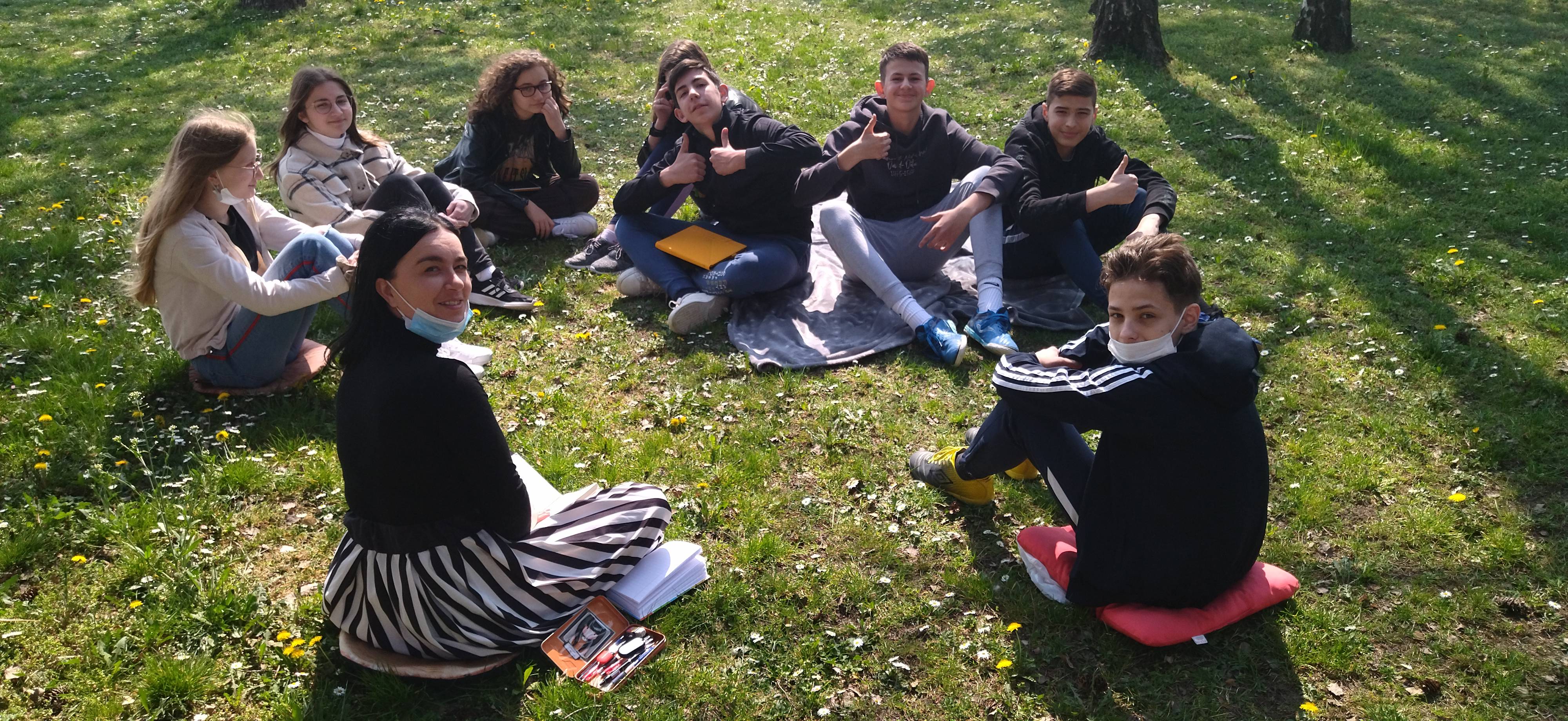 Učenici 8. r iskoristili su sunčani dan za sat lektire na svježem zraku. Nakon čitanja knjige Kod kuće je najgore razgovarali su o romanu i prepričavali zanimljivosti iz svojih obiteljskih života. Svoju kreativnost pokazali su izradom internetskih memeova na temu priča iz knjige. Bilo je opušteno, zabavno i kreativno!