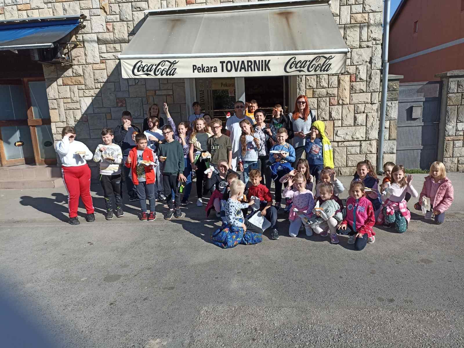 Učenici 1. i 4.razreda posjetili su pekarnicu u Tovarniku. Naučili su kako se mijesi i pravi kruh, burek i različite vrste peciva. Pekar i pekarica počastili su sve učenike pekarskim proizvodima po želji učenika. Zadovoljni i sretni ZAHVALILI SU SE našem pekaru i pekarici te krenuli sa svojim učiteljicama put škole.