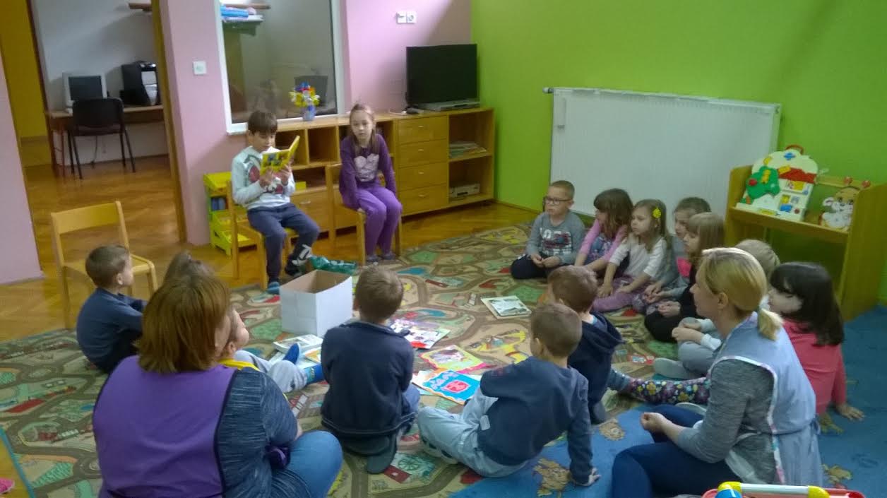 Nakon što su pregledali sve knjige koje smo donijeli uslijedilo je čitanje. Sunčica i Gabrijel su čitali brojalice dok su knjižničarka i tete čitale cijele priče. Djeca su znatiželjno slušala i uvjerila nas kako su knjige došle u prave ruke.