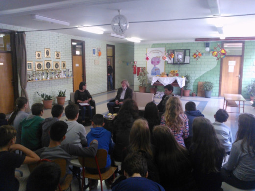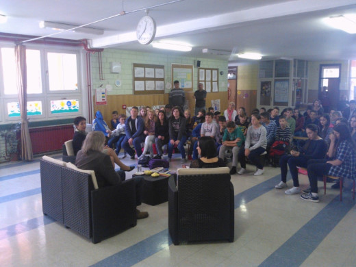 U utorak, 25. listopada, naša je škola imala čast ugostiti jednog od najpoznatijih hrvatskih književnika, Hrvoja Hitreca. Književnikov posjet posebno je obradovao učenike 5. – 8. razreda, jer su simpatični Eko Eko i legendarni Smogovci među lektirama koje najviše zavole u svojim osnovnoškolskim danima. Druženje i razgovor s poznatim piscem protekli su u ugodnoj atmosferi, uz smijeh, šalu i mnoštvo pitanja koja su učenici s velikim zanimanjem postavljali, u želji da otkriju nepoznate detalje i anegdote iz života jednoga poznatog pisca. Gospodin Hitrec prvi je put posjetio Tovarnik i našu školu, ali nadamo se da će nam jednom ponovno doći, budući da smo svi uživali u veselom druženju s jednim od naših omiljenih pisaca za djecu i mlade.