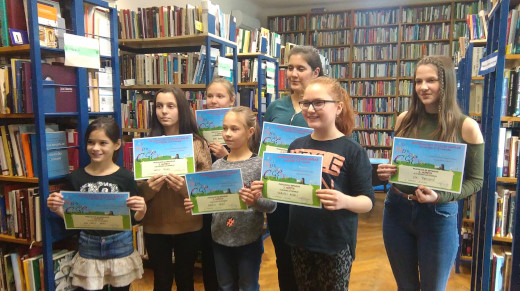 Povodom obilježavanja Mjeseca hrvatske knjige (15. listopada – 15. studenoga) u Gradskoj knjižnici i čitaonici Vinkovci organizirano je Županijsko natjecanje u čitanju naglas za 2016. godinu. Na natjecanju su mogli sudjelovati učenici od 3. do 8. razreda osnovnih škola, a našu školu predstavljale su učenice Sunčica Grgić (4. r.) i Marija Pejak (8. r.), u pratnji svojih mentorica, knjižničarke Marine Ivakić i nastavnice hrvatskoga jezika Darje Šišić. Sunčica i Marija obradovale su nas odličnim nastupom i uspjehom jer su osvojile izvrsno 2. mjesto. Žiri ih je posebno pohvalio za njihovu kreativnost, izražajno čitanje i njegovanje ljubavi prema knjigama, a sa sobom su kući ponijele zaslužene zahvalnice i nagrade. Osim zahvalnica, i učenice i mentorice ponijele su lijepe uspomene sa zanimljivog druženja, a stečeno je i jedno novo iskustvo koje će biti poticaj za daljnji rad, trud te razvijanje ljubavi prema književnosti i knjigama kod naših učenika.