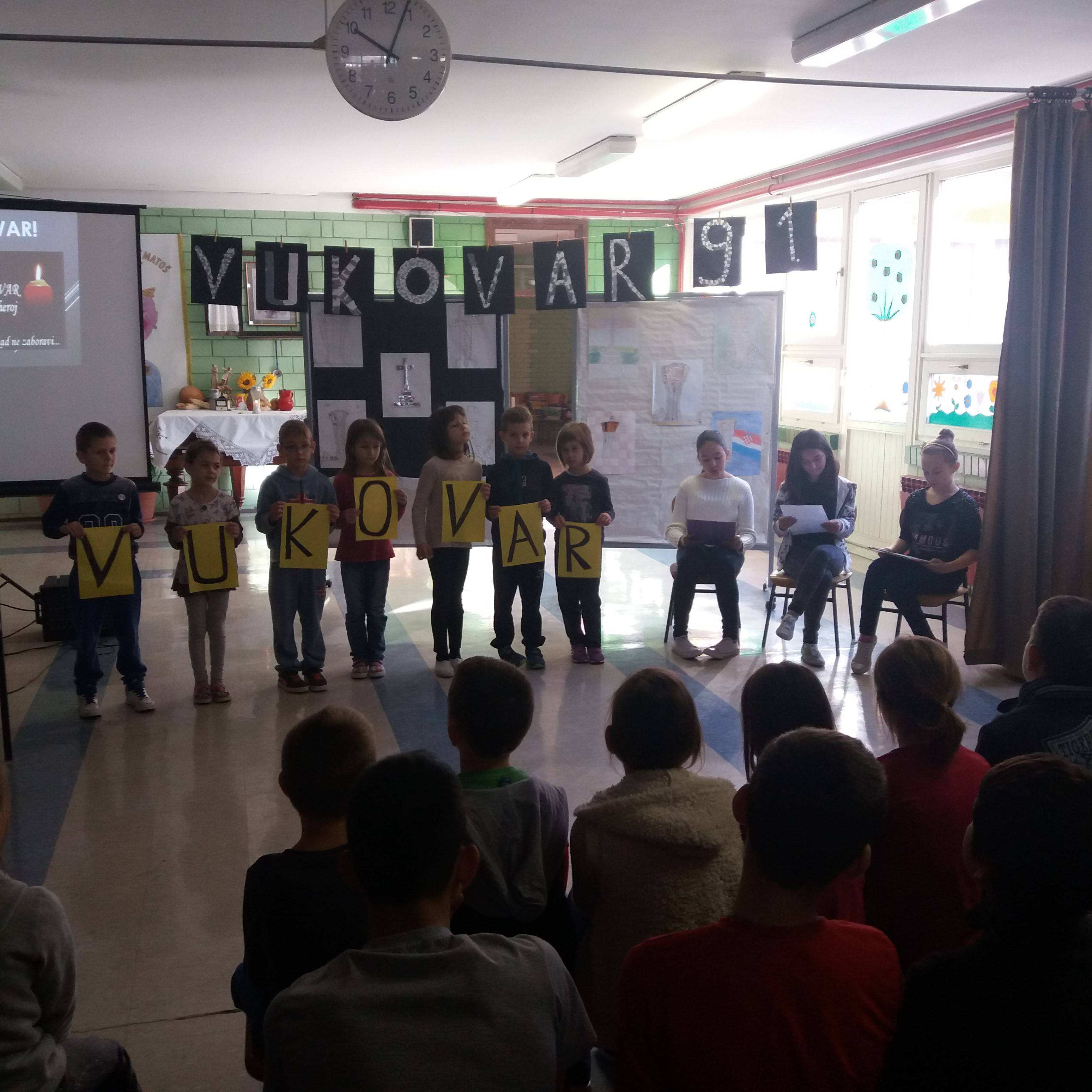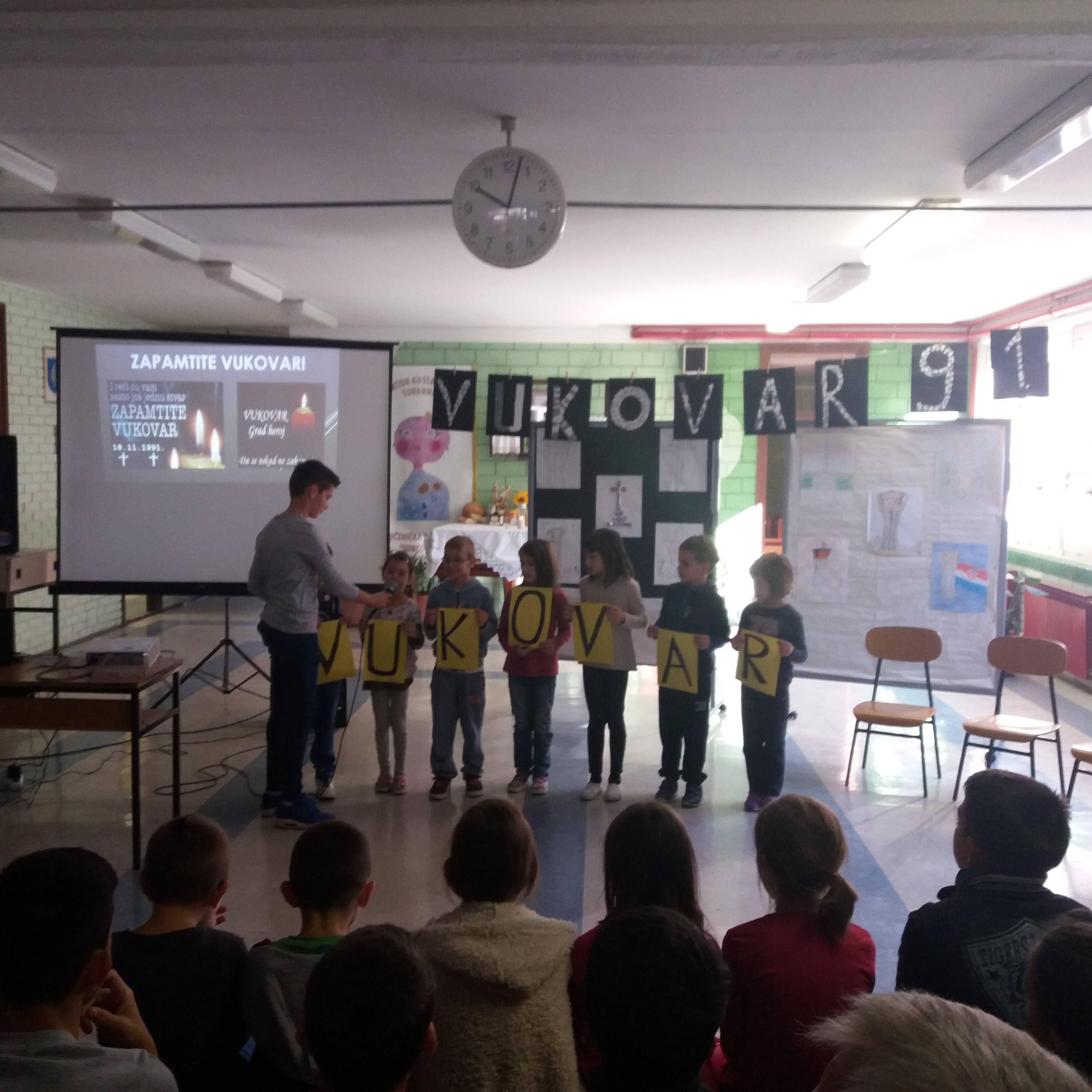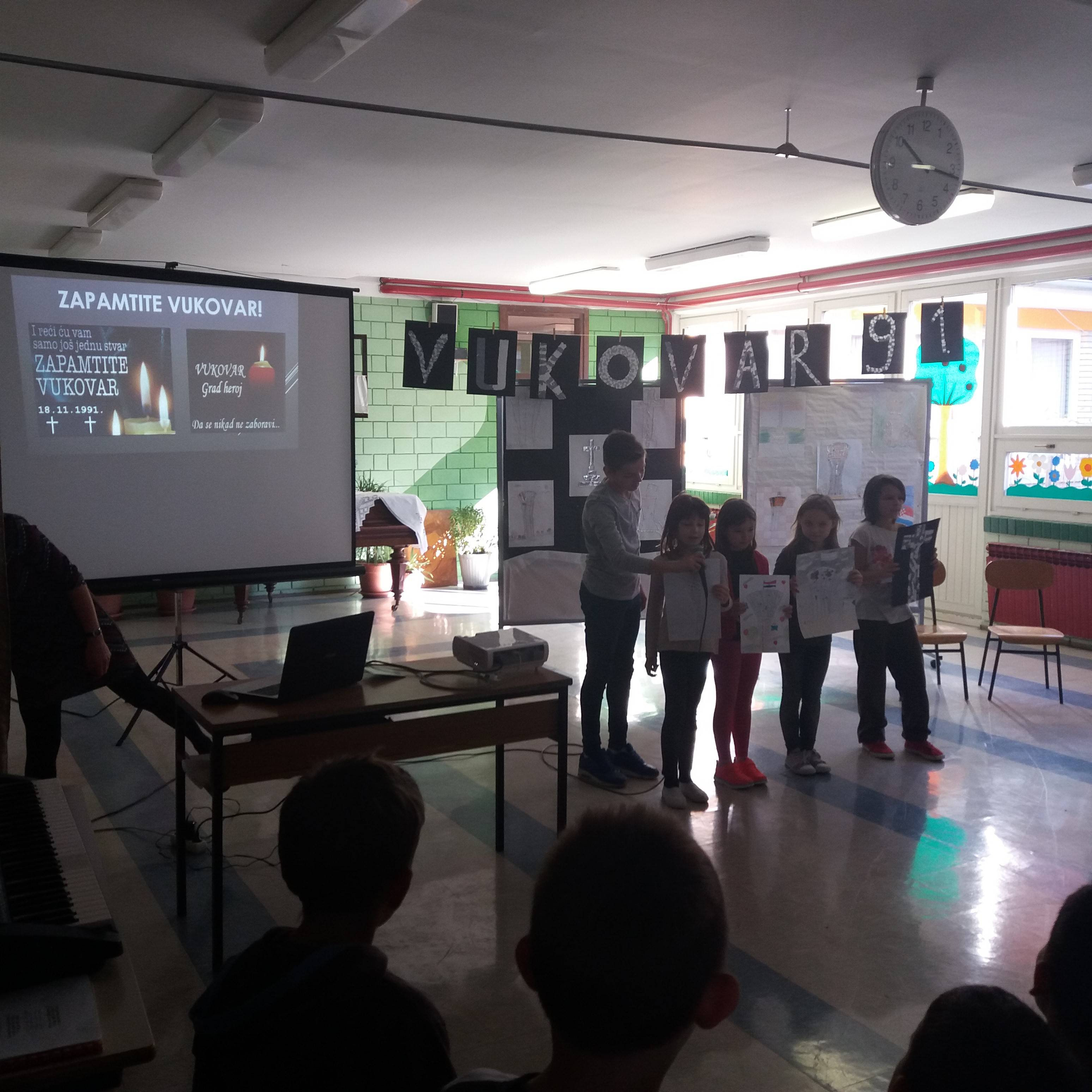 U holu naše škole održan je prigodan program povodom sjećanja na žrtvu Vukovara 1991. Učenici su pripremili i izveli prigodne pjesme, recitacije i literarne radove. Nakon toga su ispred škole zapaljene svijeće za sve poginule civile i branitelje grada Vukovara. Na kraju su učenici i učitelji pogledali dokumentarac o bitci za Vukovar.