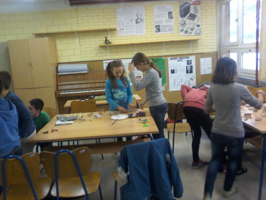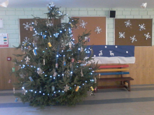 Učenici 5. razreda na satu likovne kulture i satu razrednika izrađivali su eko ukrase za školsku jelku te istu danas okitili. U radu su imali pomoć učenika 1. i 2. razreda te pedagoginje, školske knjižničarke i naše asistentice Ivane. Naša škola već sada odiše onom posebnom, božićnom čarolijom...