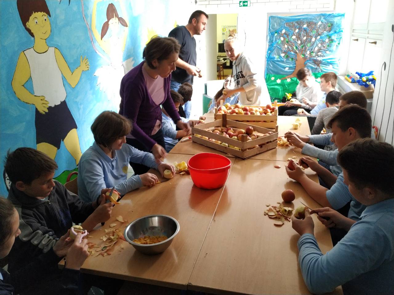 Naši su mali biolozi, ekolozi i ostali učenici, uz druženje i smijeh, sa svojim učiteljima imali pravi sat domaćinstva - gulili su i rezali jabuke, kuhali ih te zajedničkim snagama stvorili nove proizvode. Pokazali su još jednom da se, kad se male i velike ruke slože, može mnogo toga učiniti i učiti za život.