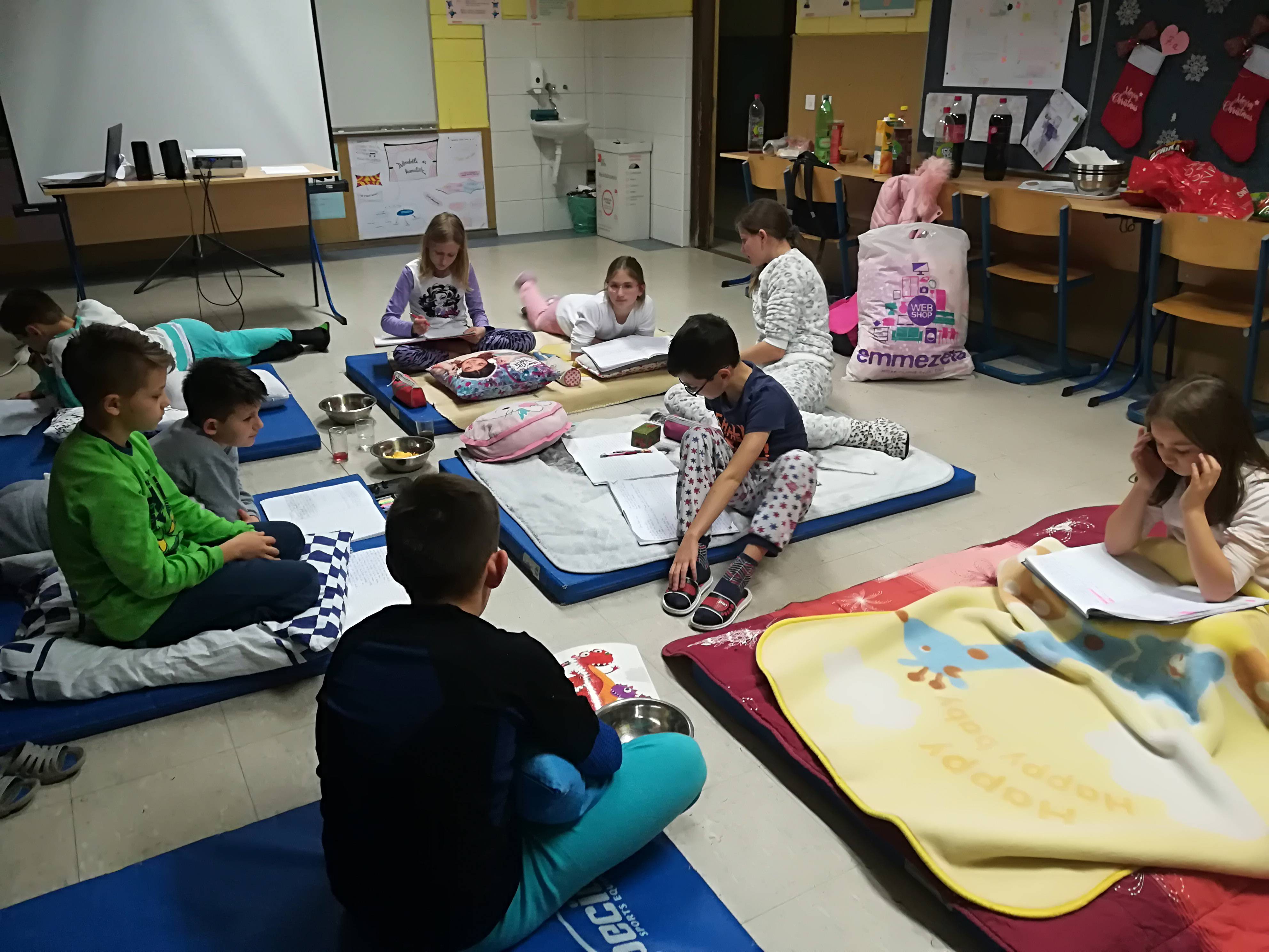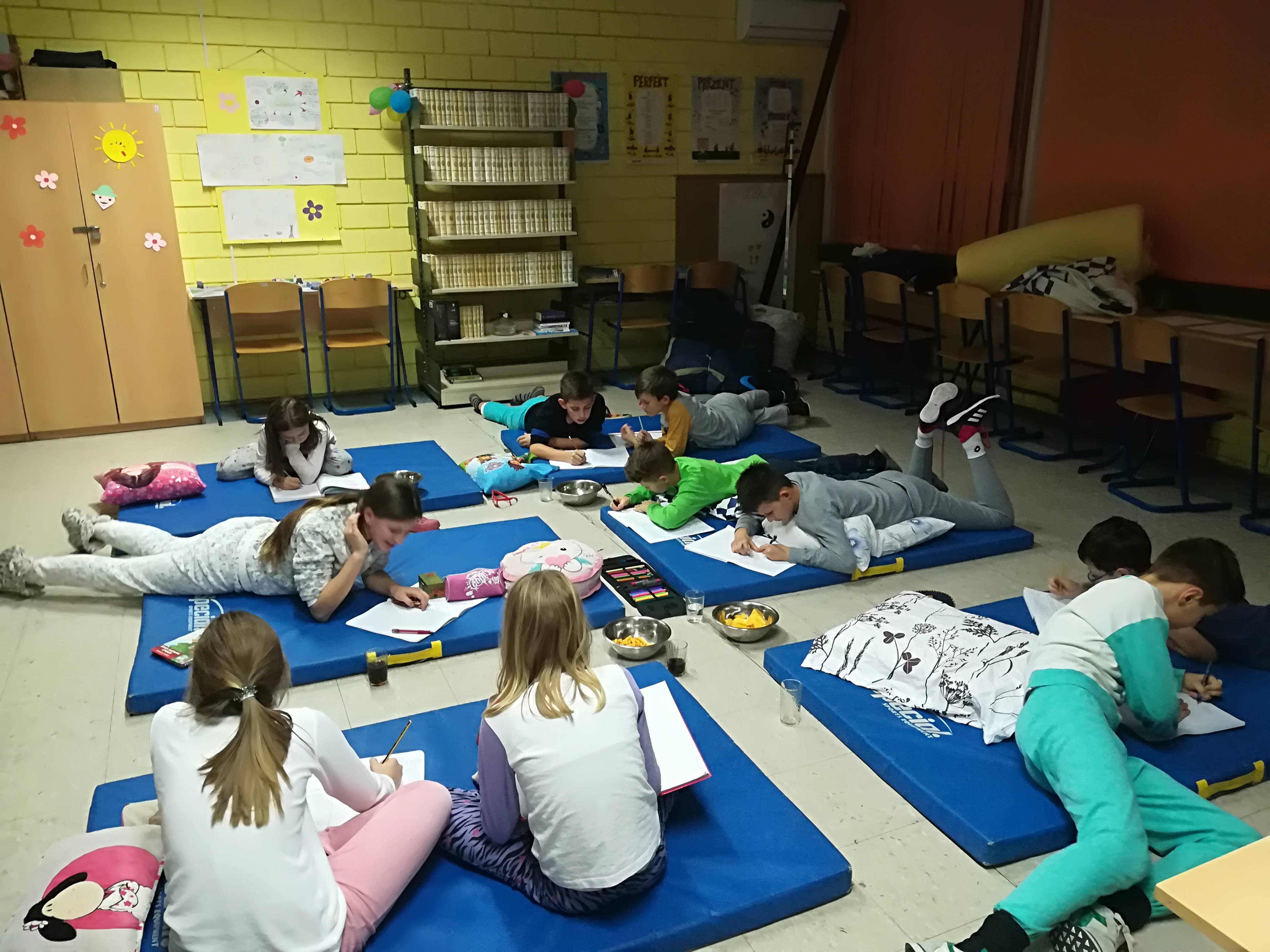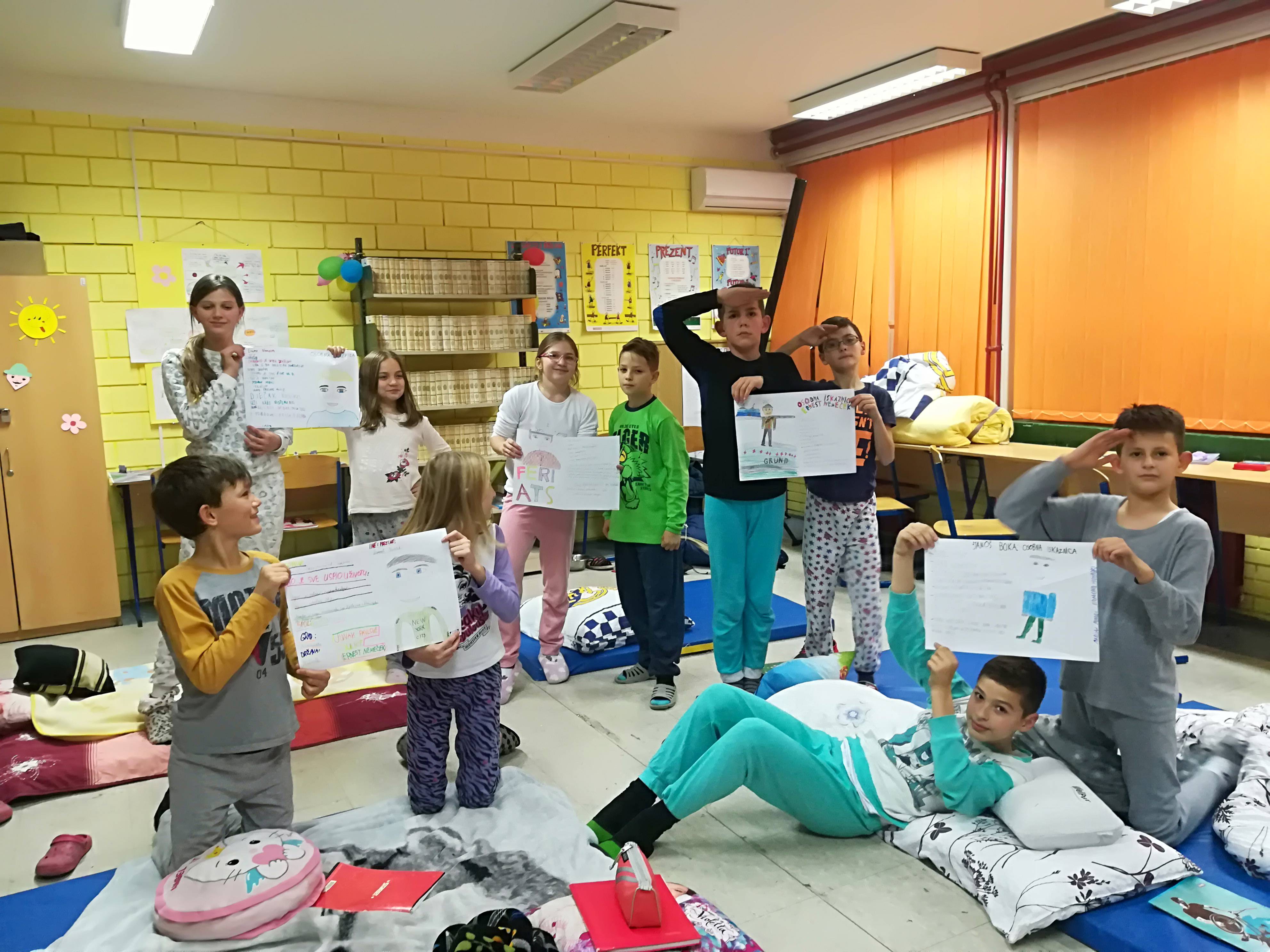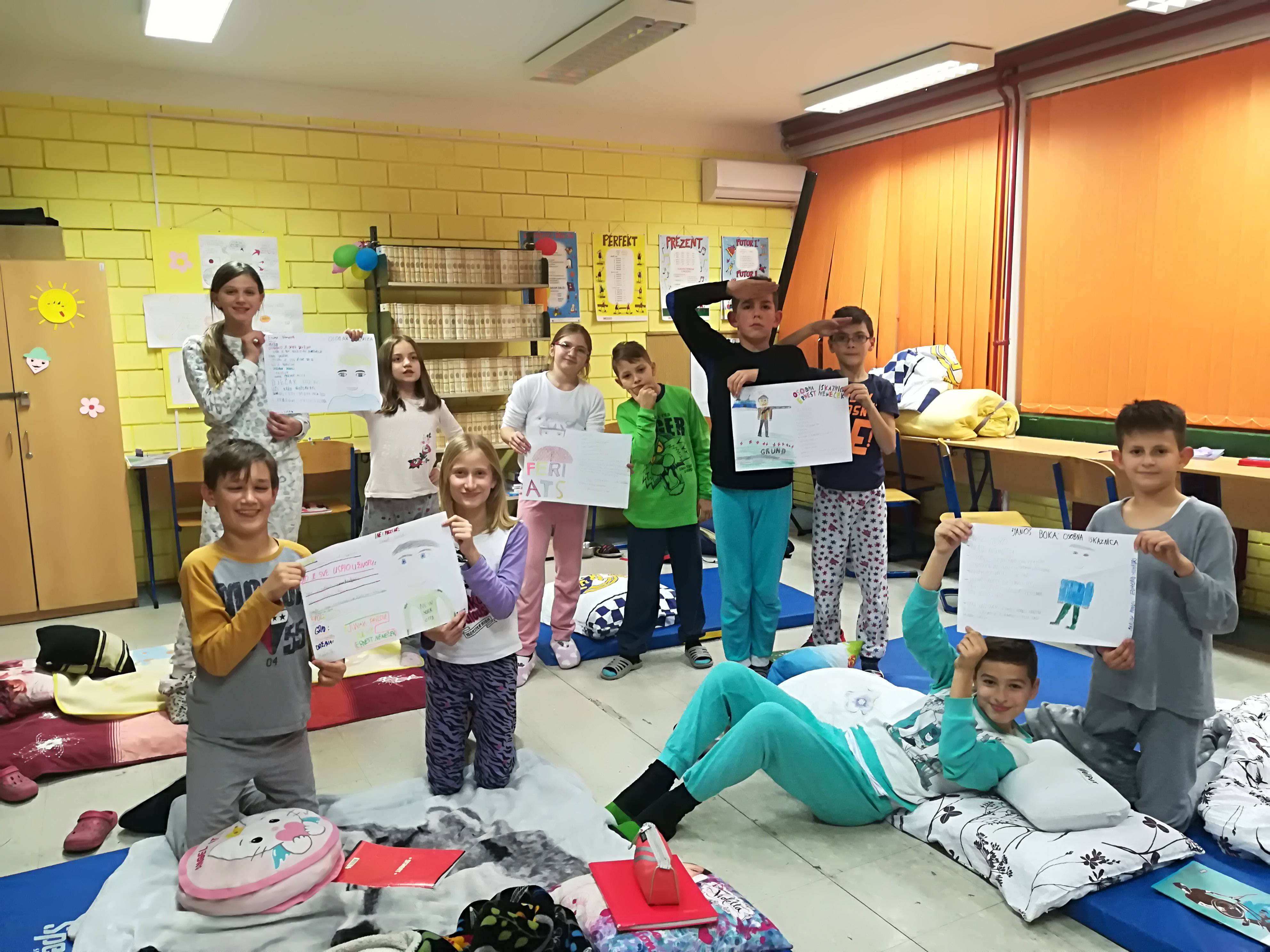 S učiteljicom su ušli u zanimljiv svijet Junaka Pavlove ulice te su cijelu večer proveli s dragim književnim likovima, u opuštenoj atmosferi i u - pidžamama. Crtali smo, pisali pisma Nemečeku, Boki i ostalim junacima, izrađivali njihove osobne iskaznice, ali smo se i igrali, lovili po praznoj školi, igrali žmire, uživali u pizzi, gledali film i na kraju slatko zaspali u toplini učionice Hrvatskoga jezika.