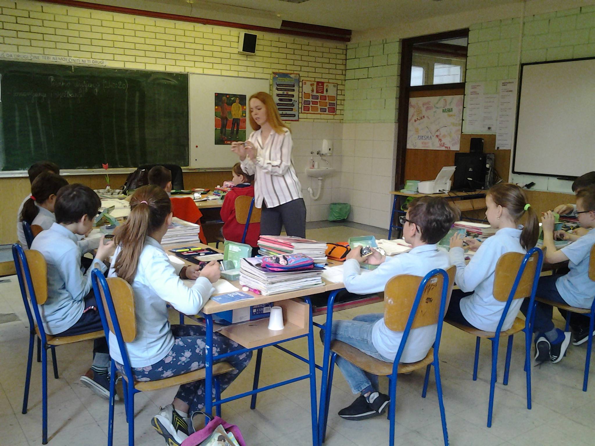 Učenici 4. razreda, danas su, na satu matematike koristili MICRO;BIT kao nastavno sredstvo u realizaciji nastavnog sata. Uz pomoć učiteljice pripravnice Martine Markutović i njezine mentorice Marjane Kovačić učenici su ponavljali i vježbali dijeljenje brojeva uz pomoć MICRO;BITA.Bilo je zabavno i korisno.