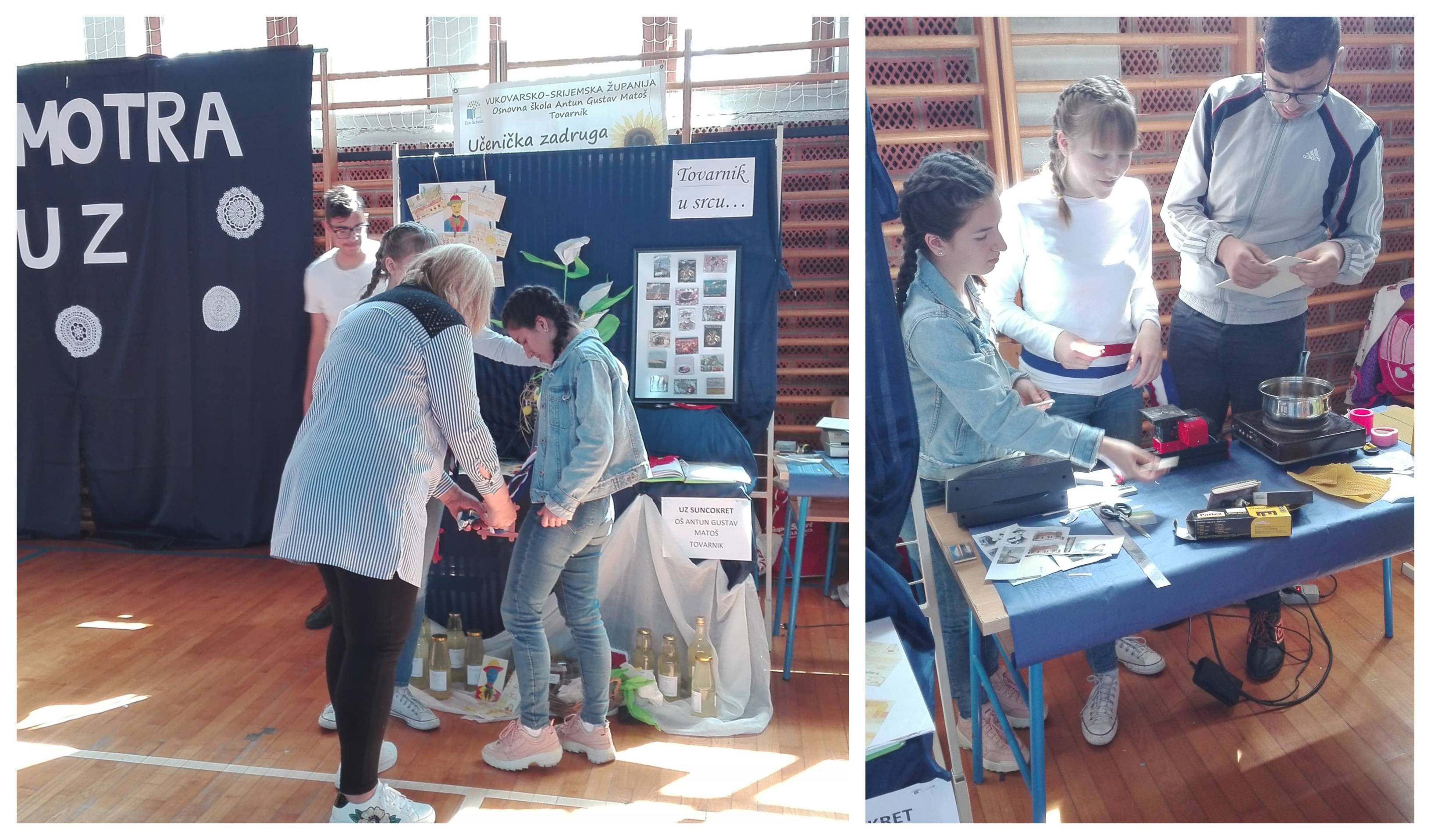 I ove smo školske godine sudjelovali na Županijskoj smotri učeničkih zadruga koja je održana 24. svibnja u OŠ Vođinci. Vrijedan rad učeničke zadruge Suncokret predstavile su učenice osmog razreda Josipa Popović i Amra Rušiti te učenik sedmog razreda Marino Doknjaš. S ponosom su predstavili proizvode zadruge i projekte škole te im mi na tome čestitamo.