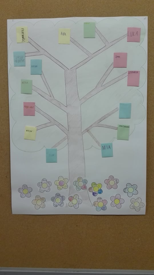 Radionicu smo započeli rješavanjem osmosmjerke koja nam je u rješenju otkrila naziv pjesme koju smo zatim slušali - pjesmu o knjigama. Na cvjetiće koje krase naše stablo upisivali su likove svoje najdraže knjige, nakon čega je ostatak razreda morao odgonetnuti o kojem je djelu riječ.