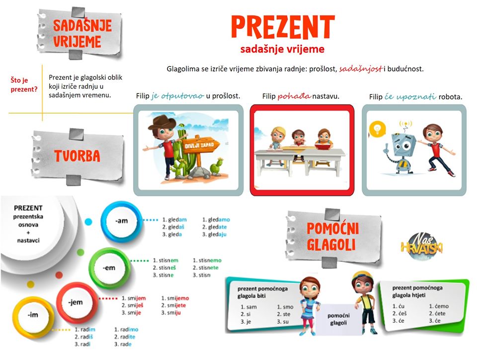 Najprije ćete se upoznati s glagolskim vremenom koje se zove prezent, a kojim se izriču radnje u sadašnjosti.