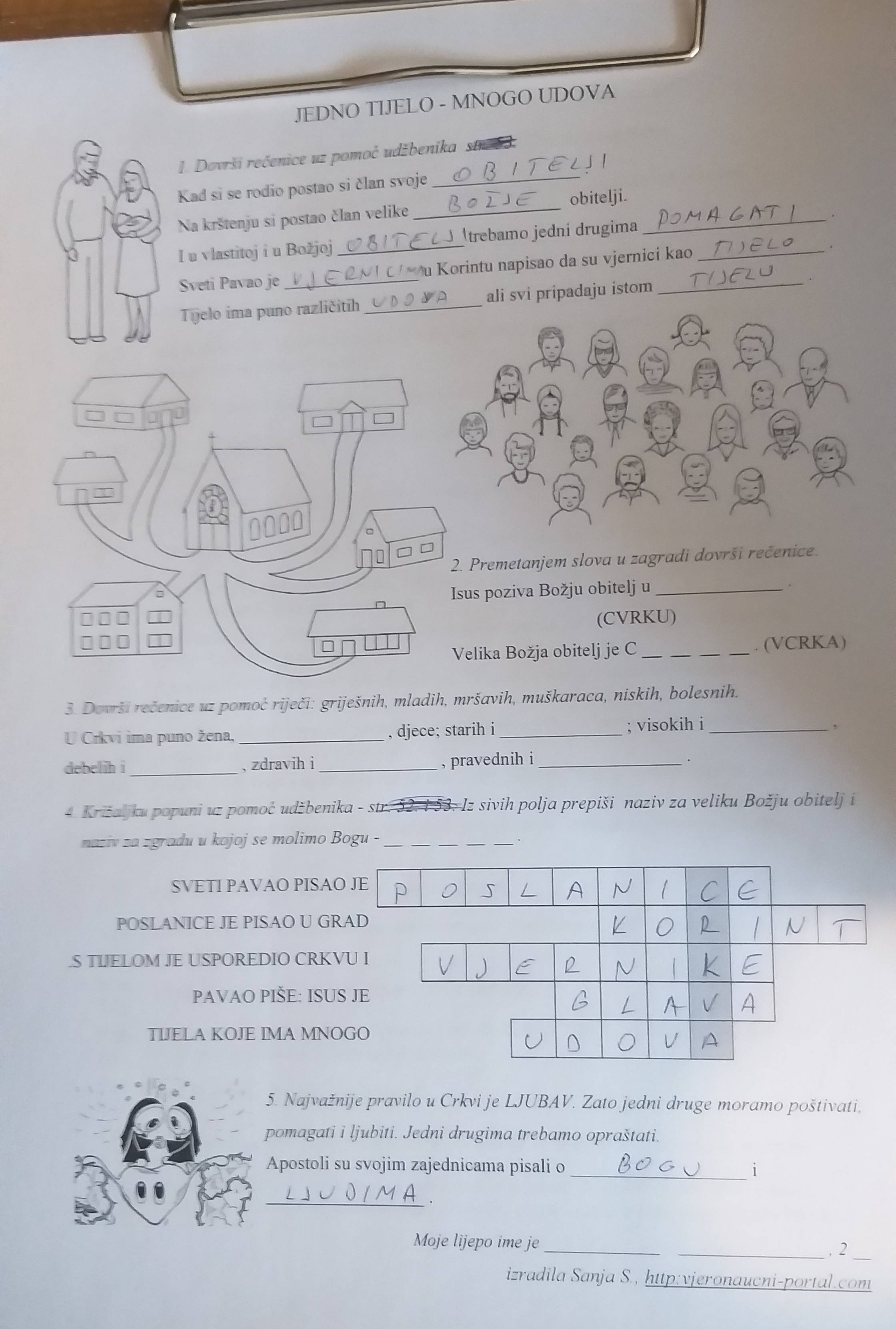 6. Mada se ova tema tek u višim razredima obimnije obrađuje pokušaj riješiti ponuđeni radni list. Ako zapne, zovi u pomoć roditelje. Više o krštenju učimo sljedeći tjedan….To je ovaj put zadaća. Fotografiraj zadaću, RADNI LIST, i pošalji je u yammer, u vjeroučiteljev inbox. Hvala i budi vrijedan. Priložio sam i pomoćni radni list za rješavanje….