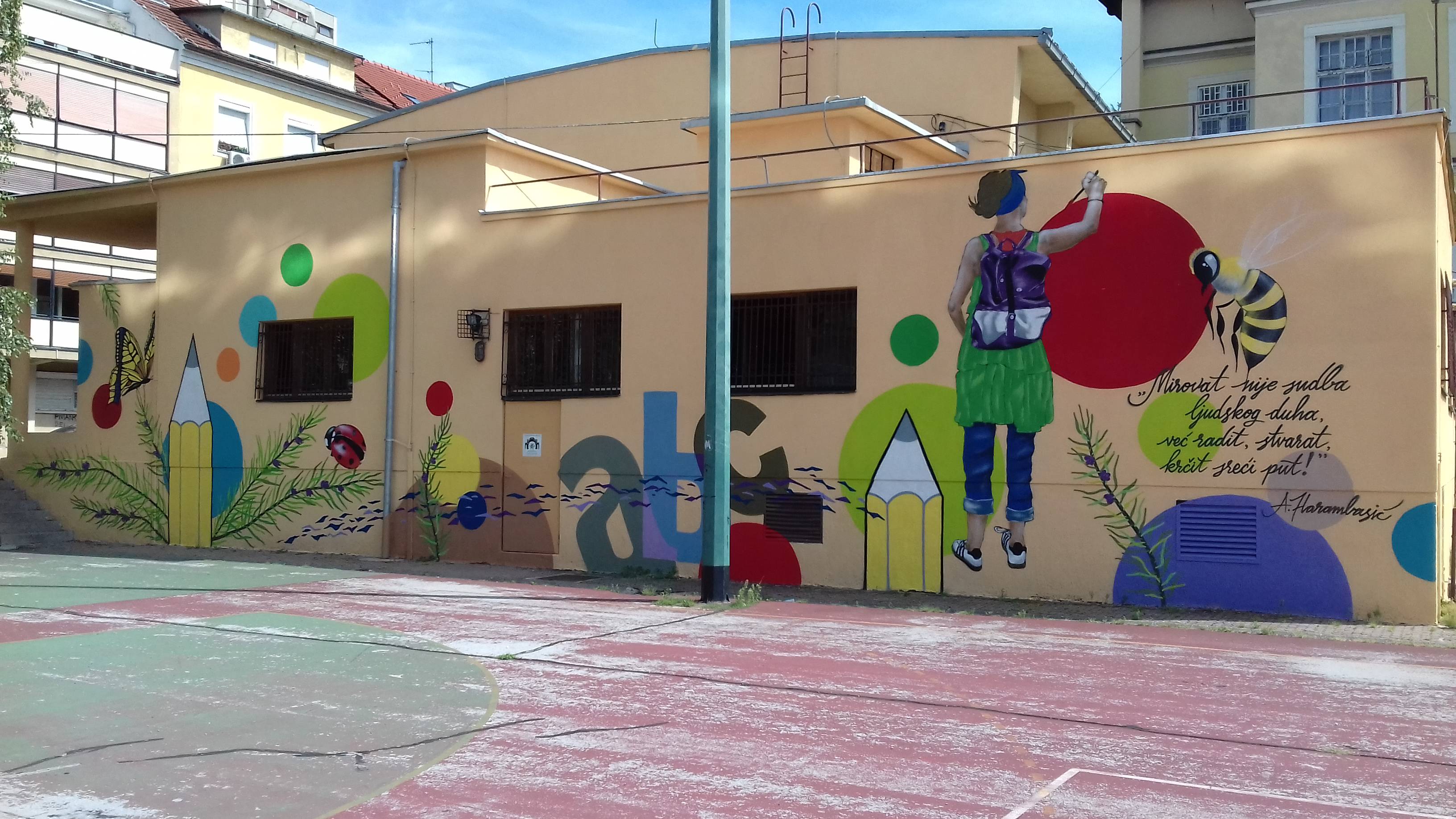 Preko ljeta smo s umjetničkim muralom ukrasili zid sportske dvorane koji je okrenut prema školskom igralištu.