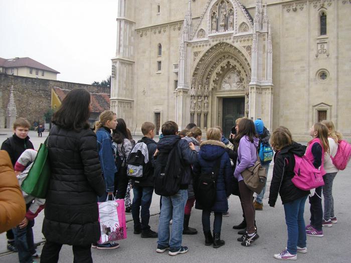 Učenici su tijekom terenske nastave uz pratnju stručnog vodiča razgledali sve važnije znamenitosti Gornjeg grada (kulu Lotršćak, crkvu sv. Marka, zgradu Sabora, Banske dvore, Kamenita vrata i katedralu).