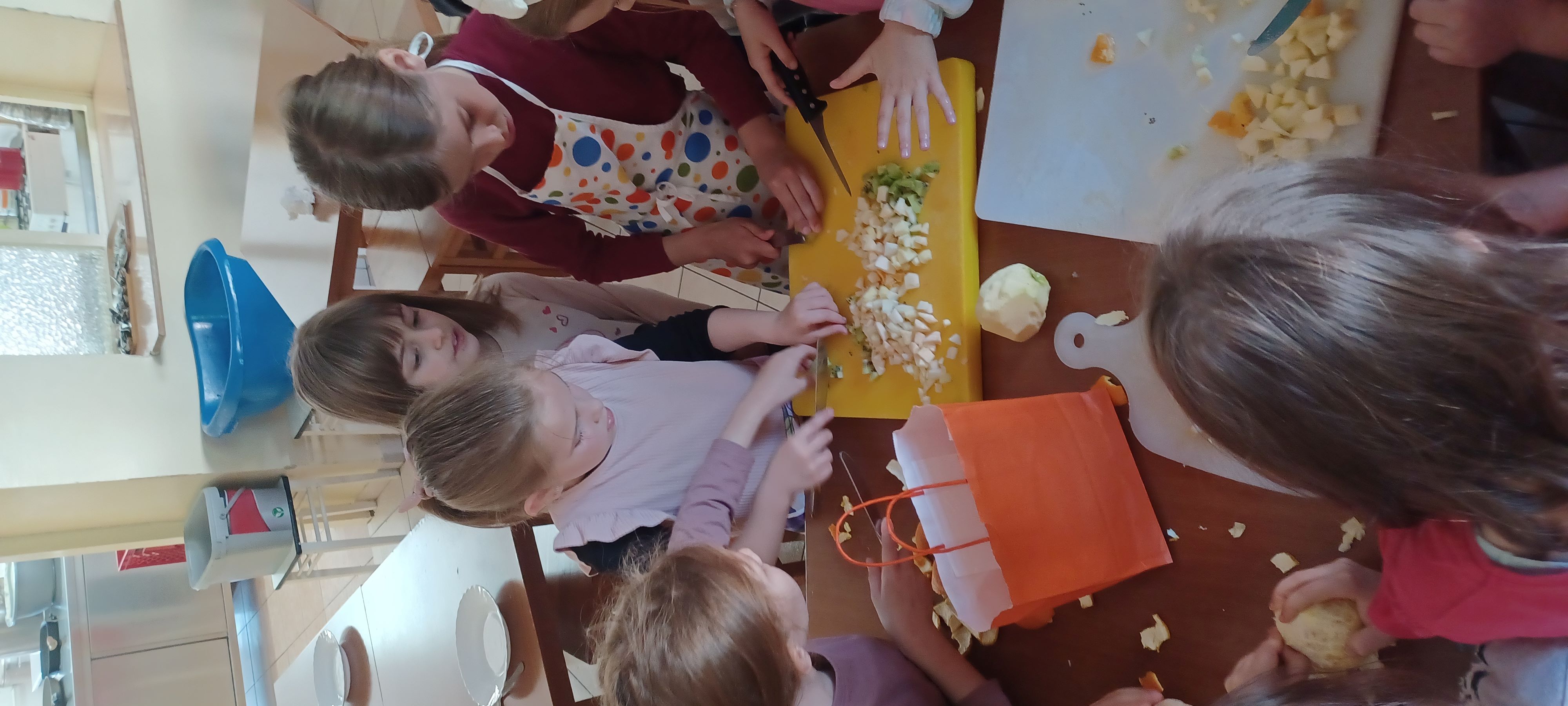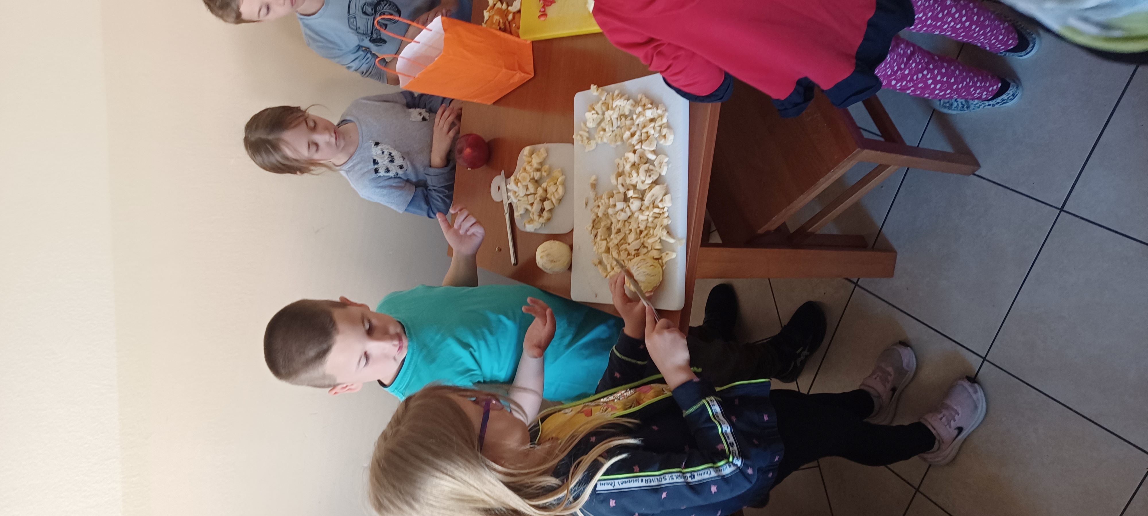„KAD SE MALE RUKE SLOŽE I ZA ZDRAVLJE SVOJ TRUD ULOŽE“ Učenici prvog razreda 3.05. nastavu prirode i društva ostvarili su na vrlo zanimljiv i poučan način. Vezano uz nastavu prirode i društva te projekt „Prehranom, pokretom i glazbom do zdravlja“ sat prirode i društva održali su u školskoj kuhinji spravljajući zdravi obrok – VOĆNU SALATU. Zajedničkim snagama uz veselo druženje pripremili su ukusan i zdrav obrok u količinama koje su bile dovoljne za sve učenike prvog razreda. Prvi zadatak bio je da u školu donesu voće koje najviše vole; jednu jabuku, naranču, kivi, krušku, šipak, bananu… Dogovorili smo se da će napraviti voćnu salatu. Razgovarali smo o voću i važnosti pravilne prehrane za zdravlje čovjeka te obrocima u jednom danu. Istraživali smo i učili kako je voće bogato vitaminima te da je za rast i razvoj potrebno jesti voće svaki dan. Uspoređivali smo voće po veličini, promatrali na koje nas geometrijsko tijelo podsjeća, spomenuli smo boje voća i podsjetili se što znamo o osnovnim i izvedenim bojama. Razgovarali smo i o tome kako moramo biti oprezni u rukovanju nožem.Nakon razgovora primili smo se „posla“. Stavili smo pregače, dobro i pravilno oprali ruke te ponovili zašto sve to moramo učiniti. Iako učenici to znaju, dobro je prisjetiti se i ponoviti. Nakon toga smo oprali doneseno voće i krenuli u avanturu…. Svaki učenik je dobio nožić za guljenje i rezanje voća. Započeli smo s rezanjem jabuka, naranči, jagoda, banana, krušaka, grožđa… Nismo puno pričali jer smo bili zauzeti poslom. Naučili smo da je voće jednako ukusno, ali puno zdravije od slatkiša. Sudeći po izrazima lica i interesu, svi učenici bili su zadovoljni i procesom i produktom svoga rada . Punog trbuha s osmjehom na licu, odlazeći iz školske kuhinje i dalje u hodniku osjećao se taj divan miris voća. Bilo nam je zanimljivo, poučno, nesvakidašnje i drugačije. Svima nam je bilo lijepo i htjeli bismo ovo ponoviti. Kako smo bili marljivi možete pogledati u foto galeriji.