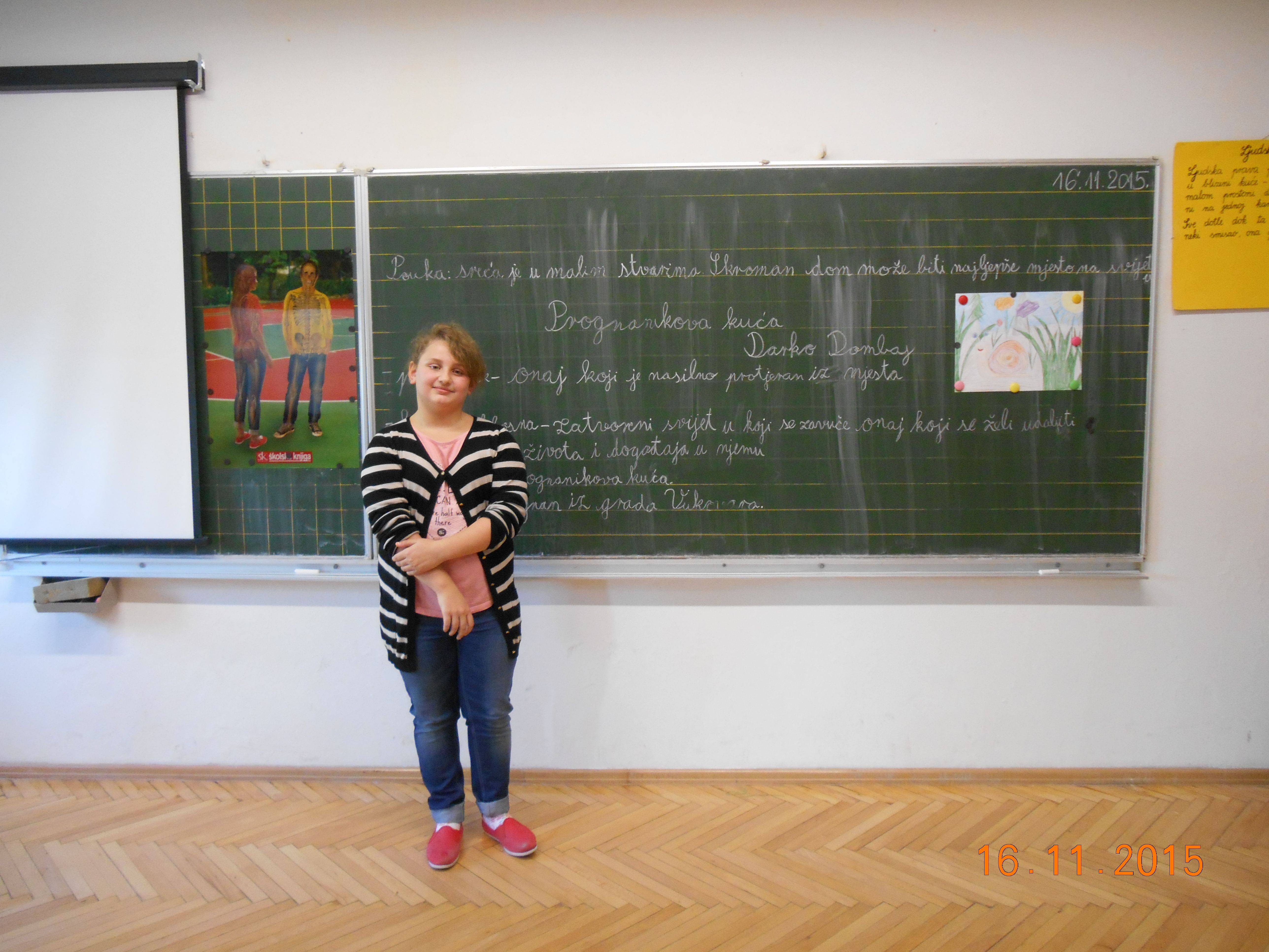 Na satu Hrvatskog jezika trebala sam obraditi pjesmu Prognanikova kuća. Dopao mi se razgovor s učenicima. Bilo mi je teško pisati po ploči i naučila sam da biti učiteljica nije lak posao.
