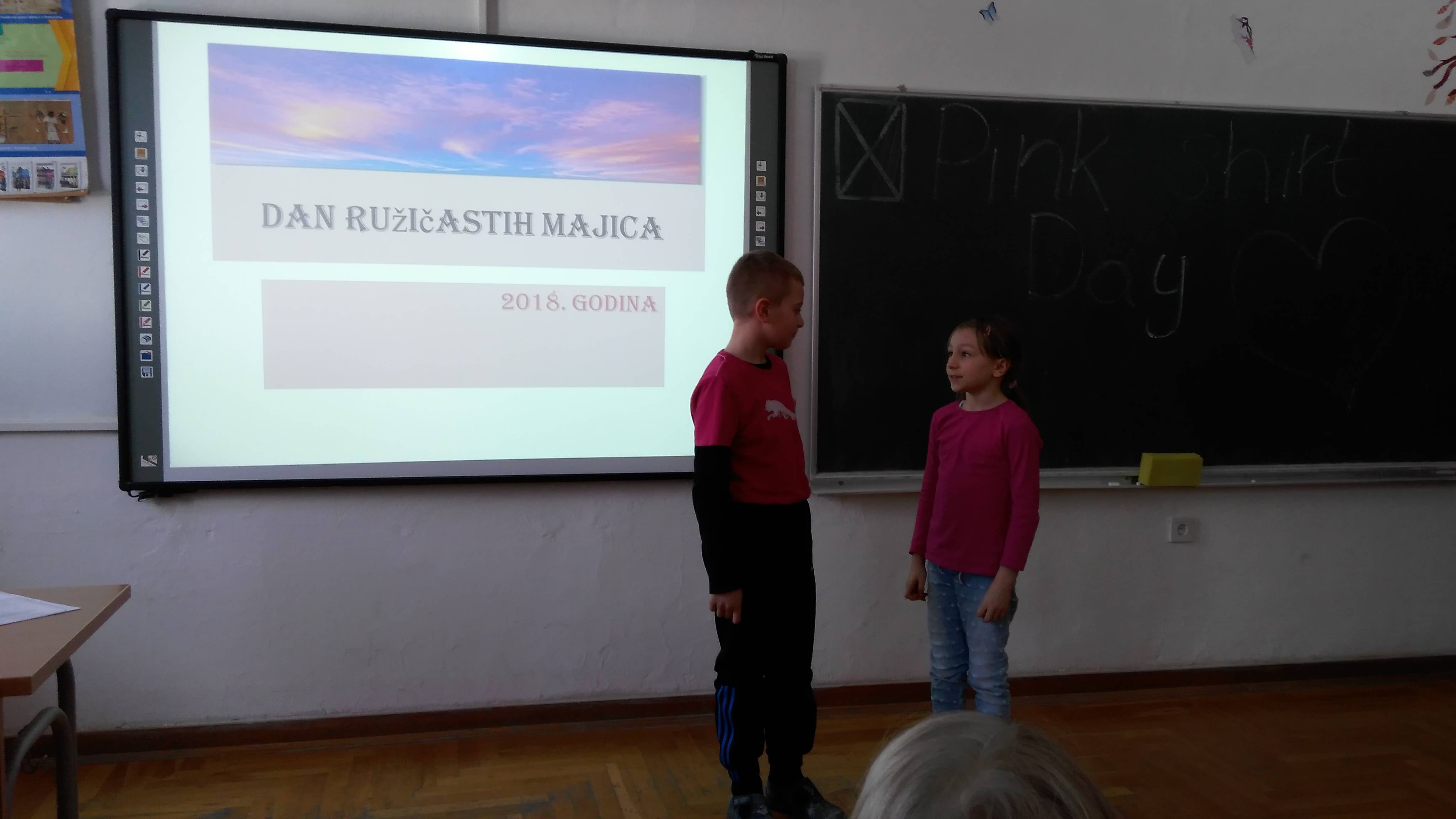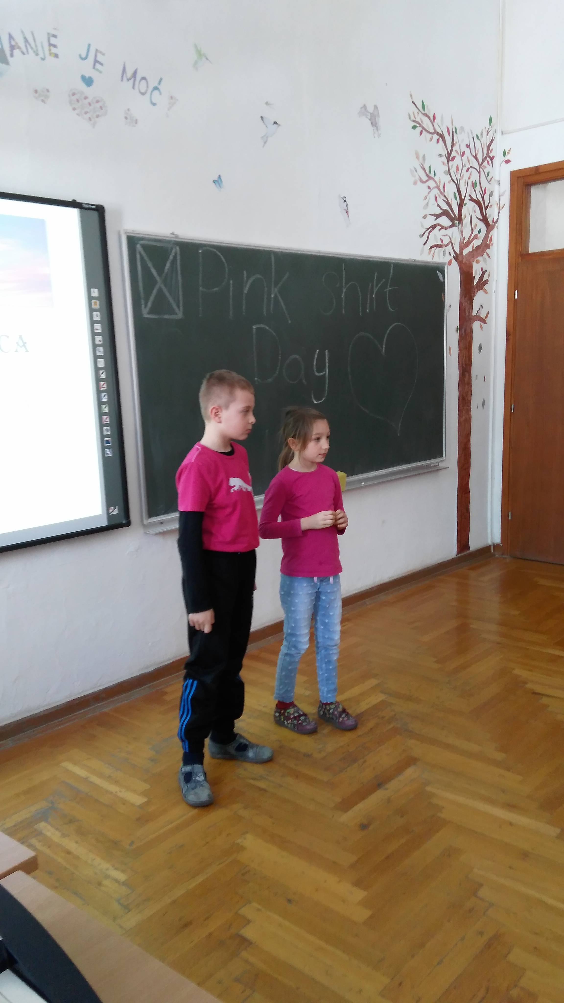 Dana 28. veljače 2018. u osnovnim školama u Klanjcu i Lučelnici obilježen je Međunarodni dan ružičastih majica. Dan borbe protiv vršnjačkog nasilja obilježi smo nošenjem ružičastih majica te kratkom prezentacijom o događaju zbog kojeg obilježavamo ovaj dan, o razlikovanju nasilja i sukoba te prepoznavanju ponašanja žrtve i nasilnika (predstavili Monika Haligonja i Petra Lepej u Klanjcu te Hana Harapin i Luka Petek u Lučelnici). Uz to nam je socijalna pedagoginja Jelena Bošnjak pokazala rezultate ankete o neprihvatljivim oblicima ponašanja među učenicima viših razreda obiju naših škola. Program su obogatili učenici od prvog do četvrtog razreda pjevanjem, plesanjem i recitiranjem, a Mali zbor pod vodstvom učiteljice Ive Povijač Cerovec razveselio nas je pjesmama Ne rugaj se i Život nije siv. učenici 7. razreda škole u Klanjcu