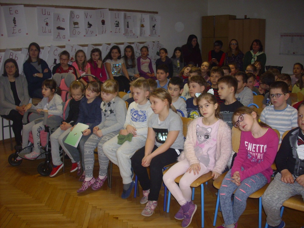 Književnica Željka Horvat - Vukelja 19. veljače 2018. posjetila je našu školu. Svojim pričokazima razveselila je sve učenike razredne nastave i njihove razredne učiteljice i učitelja. Književnica voli putovati u manja mjesta, kao običan putnik s ljubičastom torbom punom rekvizita za pričokaze.