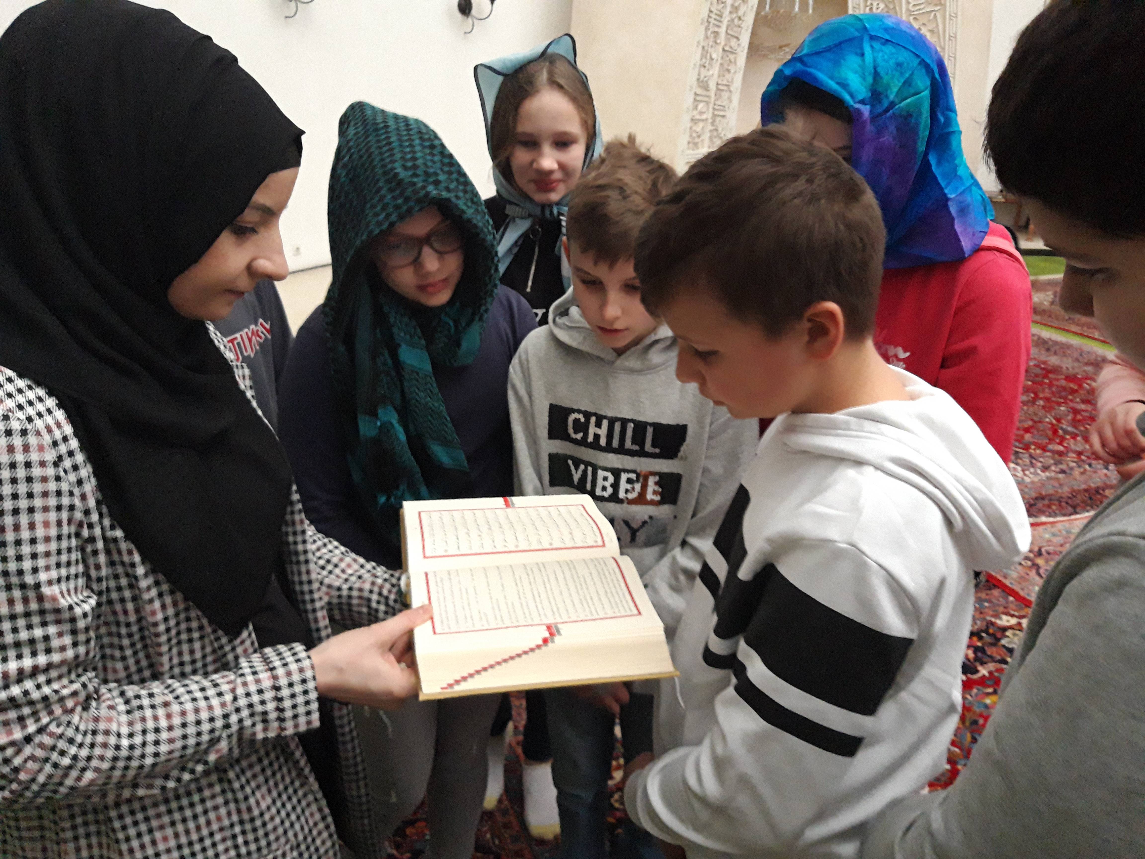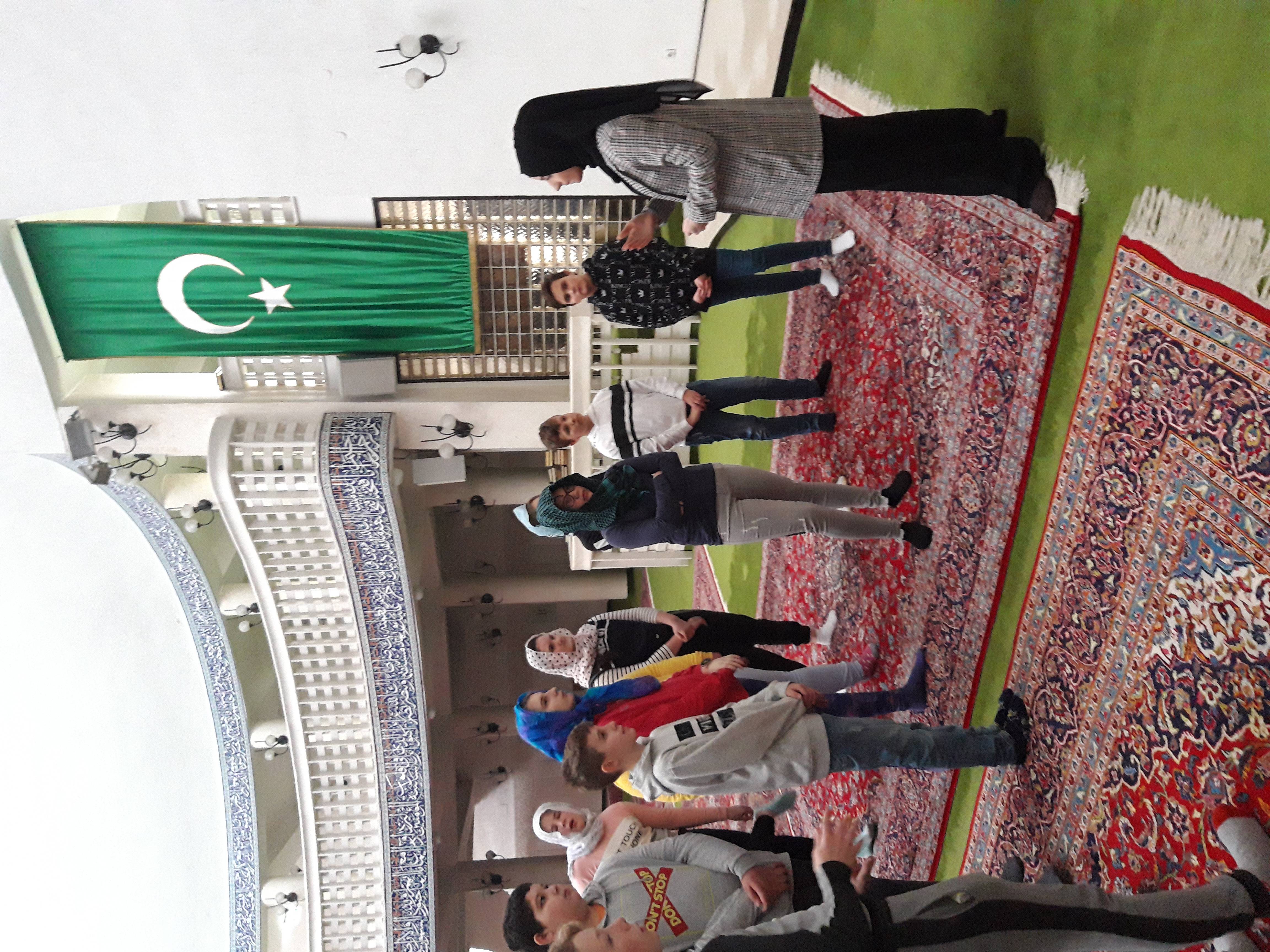 Naš posjet započeli smo u Islamskom centru gdje nas je dočekala učiteljica Islamskog vjeronauka. Naš posjet islamskoj bogomolji bio je vrlo zanimljiv, jer smo se po ulasku u džamiju izuli zbog poštivanja njihovih vjerskih običaja te su djevojke morale nositi marame. Domaćin nas je upoznao s nastankom i kulturom islama te njegovim posebnostima. Prošetali smo prostorijama džamije i vidjeli prostor za molitvu muslimana. Učenici su aktivno sudjelovali postavljajući razna pitanja o simbolima, običajima te vjeri pripadnika islama. Učiteljica je učenike osobito upoznala s “Pet stupova” islama koji definiraju dužnosti svakog muslimana. Učenike je osobito zanimalo pitanje razlike između kršćana i muslimana. Sveto Trojstvo, utjelovljenje i uskrsnuće tri su glavna kršćanska učenja koje islam ne priznaje. Poput židovstva islam ne priznaje Kristovu tvrdnju o njegovoj božanskoj naravi. Učenici su imali priliku vidjeti svetu knjigu Islama – Kuran.