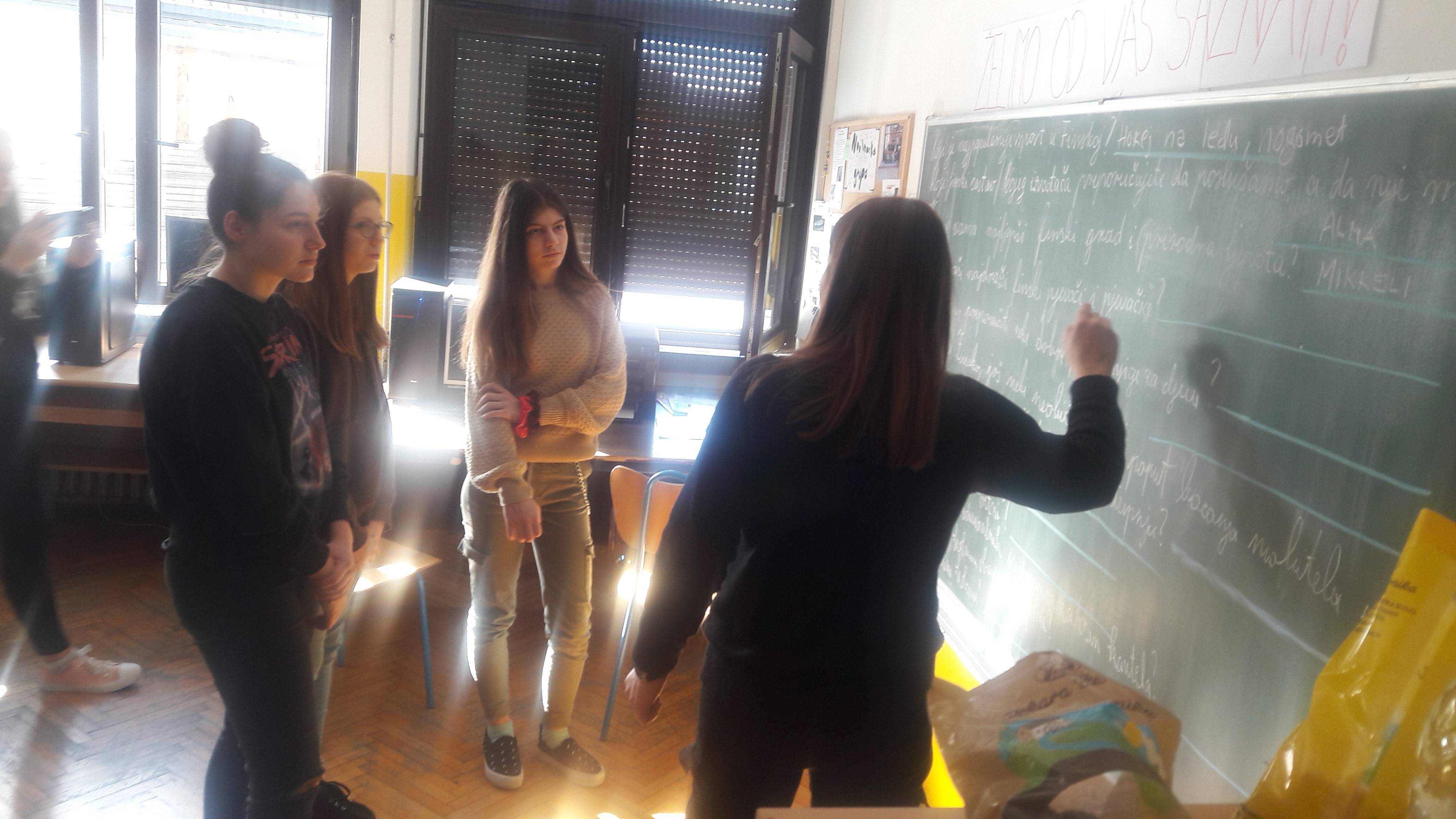 Lorena Harapin, Ella Išek i Elena Vlaisavljević u razgovoru s gospođom Laurom Stojić.