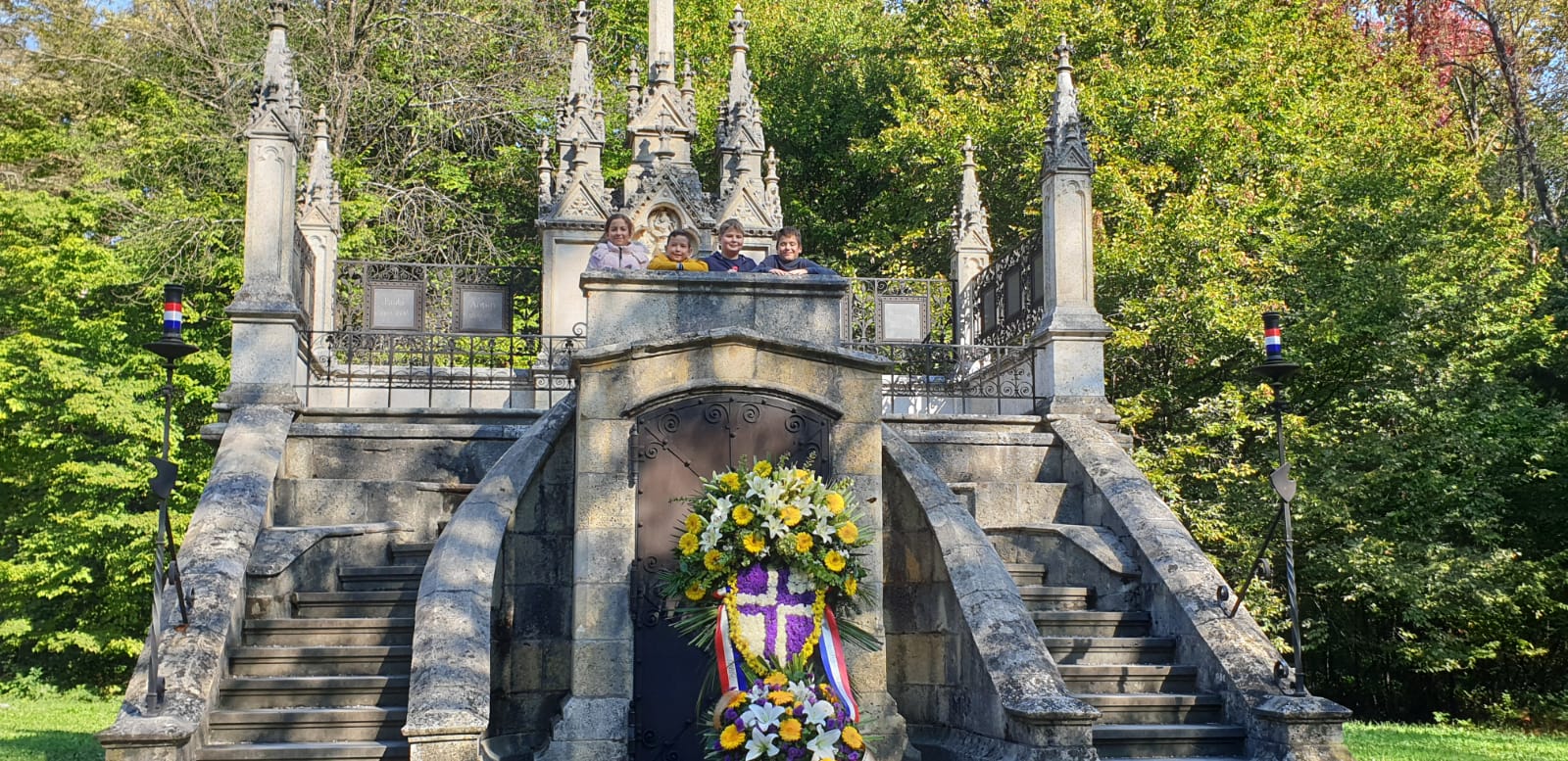 Luka, Ivan, Dominik i ja doživjeli smo ugodno iznenađenje. Učitelj je rekao da nas vodi u Zaprešić, u obilazak Novih dvora Jelačićevih. Bili smo jako uzbuđeni! Cijeli tjedan smo slušali o banovom životu, a sada ćemo imati priliku vidjeti njegov posjed i grobnicu! Najprije smo obišli kapelicu u kojoj je sahranjena banova kći. Zatim smo položili vijenac i zapalili svijeću ispred banove grobnice. Bili smo ponosni što smo u ime škole mogli odati počast čovjeku čije ime nosi naša škola. Sara Fabečić, 4.a
