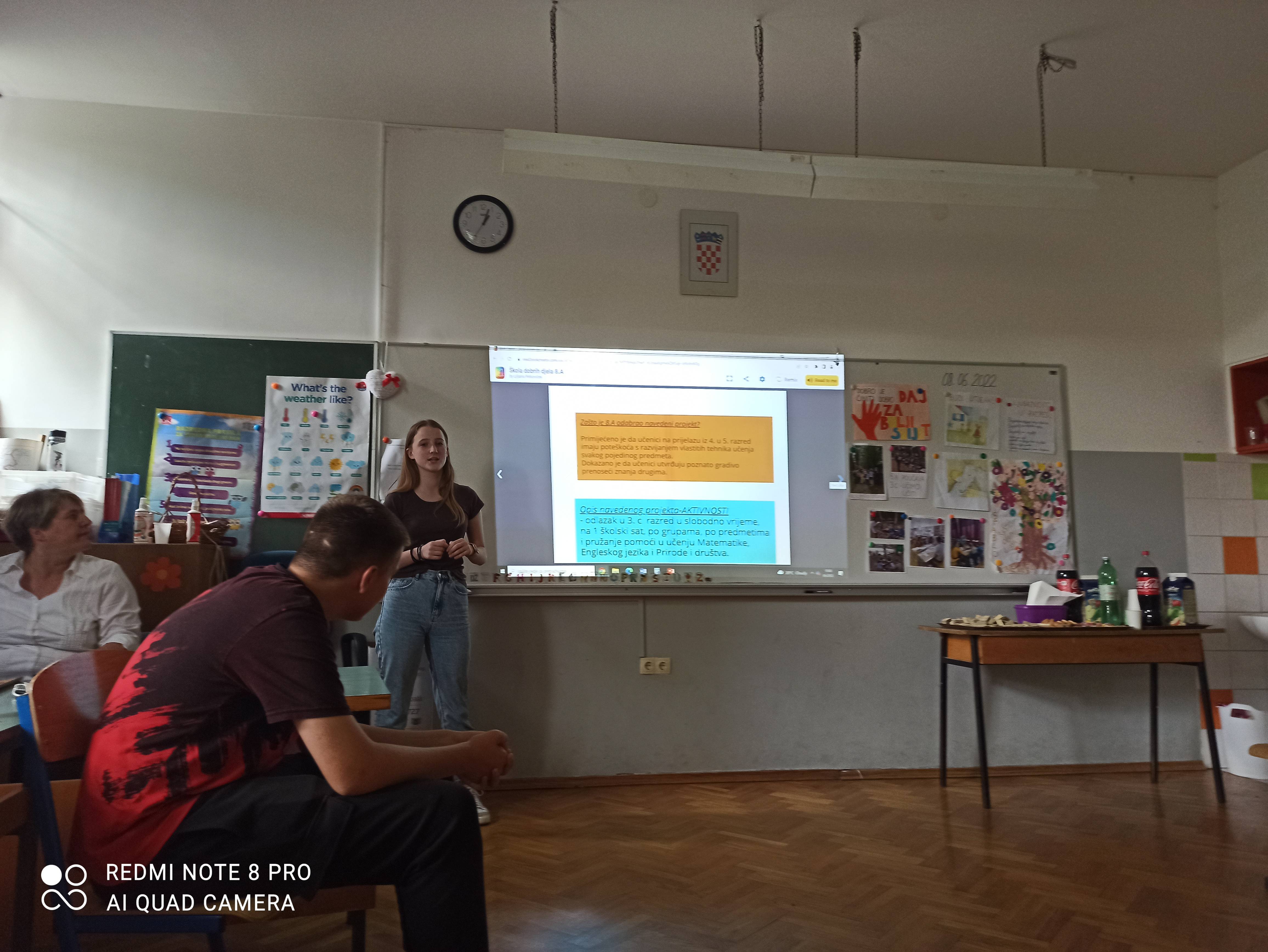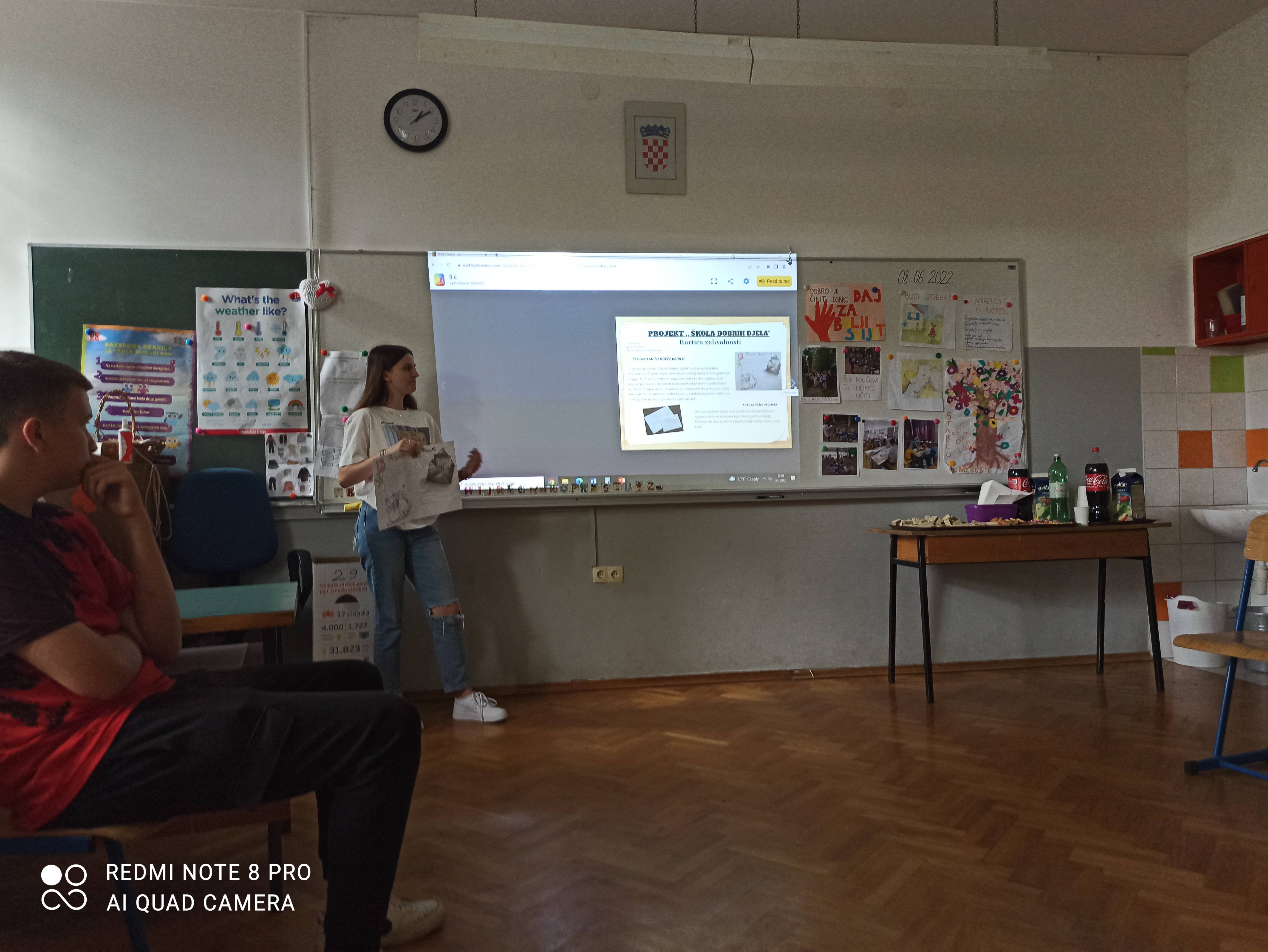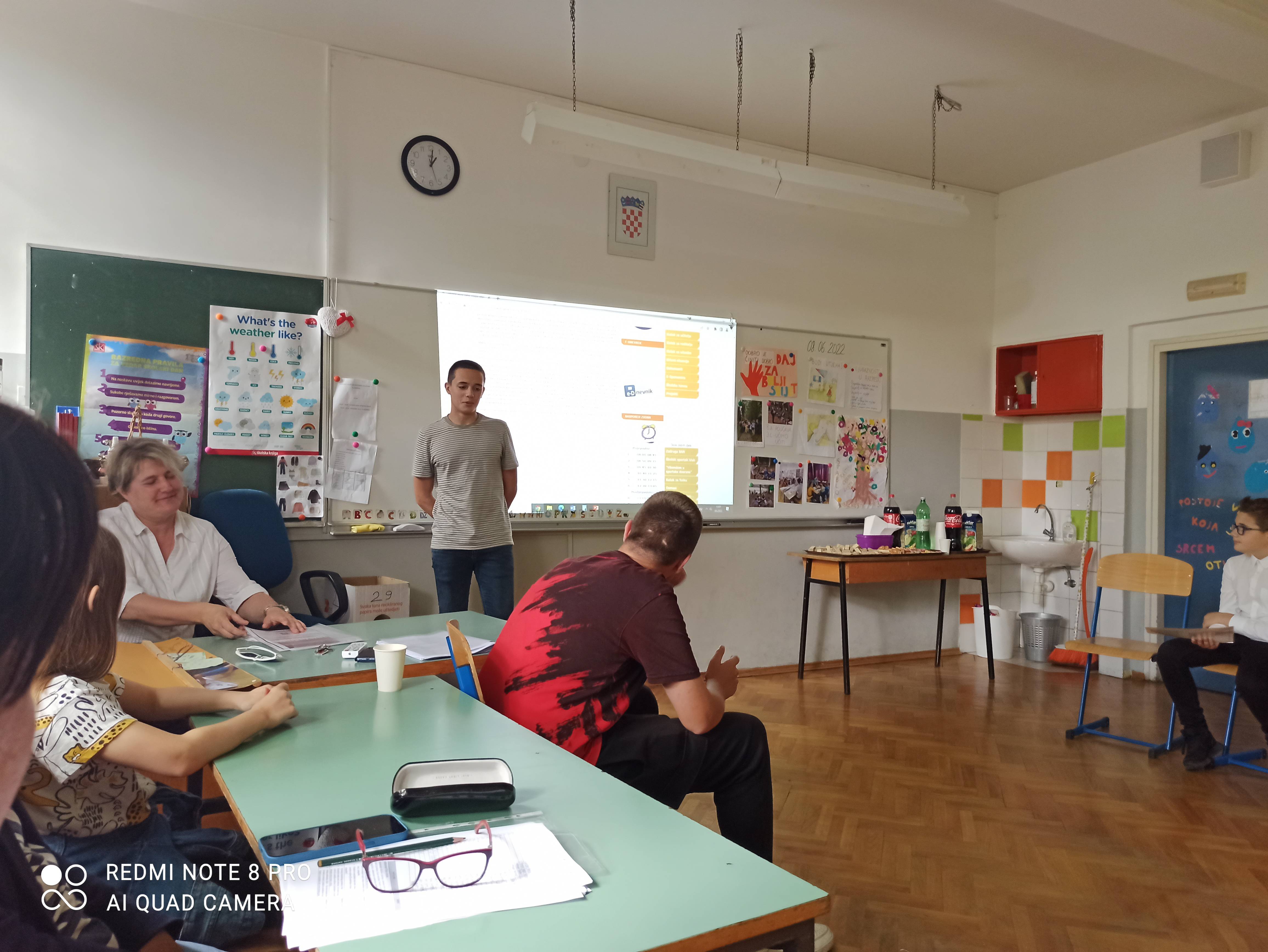 Na Vijeću učenika održanom 8.6.2022 „zaokružili“ smo razredne aktivnosti koje smo provodili u sklopu projekta od veljače do lipnja 2022. Predstavljanje razrednih projekata pozorno je pratila komisija sastavljena od predstavnika učenika, učitelja, roditelja, stručne službe i ravnateljice. Komisija je odala priznanje za rad i angažman u činjenju dobrih djela svim uključenim razredima , a naročito je pohvalila i istaknula 3 razredna projekta: