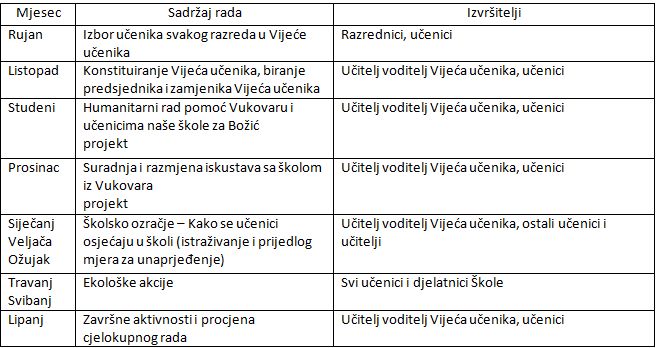 Plan rada Vijeća učenika za šk. god. 2015.-2016.: