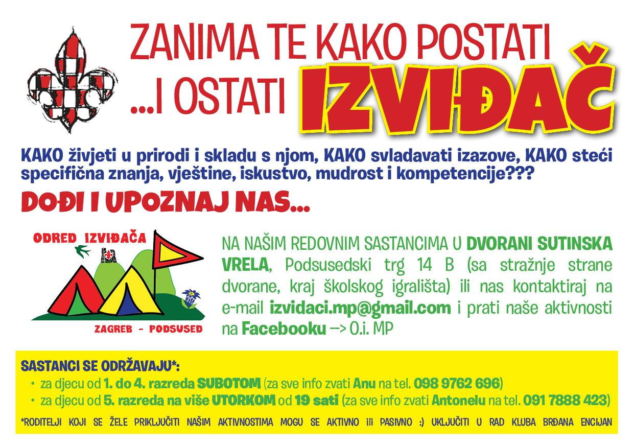 djeca od 1. do 4. razred subotom od 11 do 12 sati, a djeca od 5. do 8. razreda utorkom od 19 do 20 sati u izviđačkoj prostoriji (dvorana Sutinska vrela, ulaz sa strane igrališta)