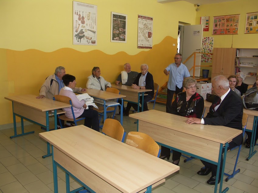 60-ta godišnjica od završetka osnovnog školovanja u našoj, a sada vašoj školi vrijedna je spomena, a nama, uglavno u i oko 75 godina starosti, posebno je značajna. Tada je to bila potpuno nova škola u kojoj smo posjećivali nastavu samo šest mjeseci, no svima nam se duboko urezala u sjećanje to, a tadašnjih profesora, nastavnika i ostaloga osoblja, kojih uglavnom više nema, svi se dobro sjećamo. Mnogima od nas unučad pohađa ovu školu, a mi im s ponosom pričamo o svojim sjećanjima koja su uglavnom jako lijepa. Dosta se promijenila, no i sada se u školi osjećamo ugodno i nekako sjetno. Poneki su spomenuli miris laštenih podova koji mi je ostao u sjećanju. Zahvaljujući gđi. prof. Jeleni Ivaci, ravnateljici škole, imali smo više od sat vremena da prošetamo školom, razredima koje smo pohađali, zbornicom i i okolicom. Svi smo mišljenja da je škola još uvijek dobro vođena i održavana, a veseli nas da smo čuli da postoje ozbiljni planovi za preuređenje, svođenje na jednosmjensku nastavu te ukupno poboljšanje uvjeta rada nastavnom osoblju, a osobito učenicima.Posebno nas je radovalo da je s nama bio i gospodin prof. Vlado Kraševac, koji je, u naše doba, brinuo o našem fizičkom zdravlju. Na kraju posjeta školi uputili smo se na zajednički domjenak te smo u ugodnom druženju s gđom prof. Ivaci i gosp. prof. Kraševac proveli ugodno vrijeme u evociranju uspomena, zapjevali, slušali o planovima, a i redovnim aktivnostima u koje se i neki od nas seniora rado uključuju. Svima vama žele sve najbolje vaši predhodnici iz davne 1958., razredi VIII. a i VIII. b koji su te godine završili osnovno školovanje. Dragutin Karlo Bohuš