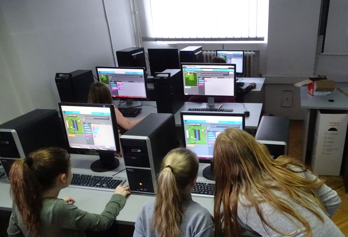 U sklopu projekta "Hour of Code" (sat kodiranja) učenici četvrtih razreda proveli su školski sat rješavajući računalne probleme. Upoznali su se s osnovnim elementima programiranja kroz problemske zadatke vezane uz igru Minecraft.