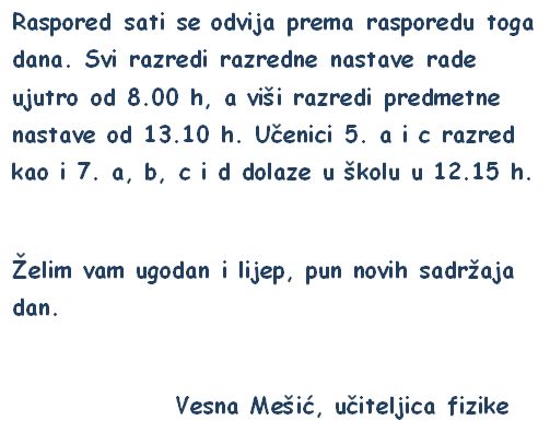 Podjela udžbenika će biti prvi nastavni dan. Molim ponijeti školske torbe.