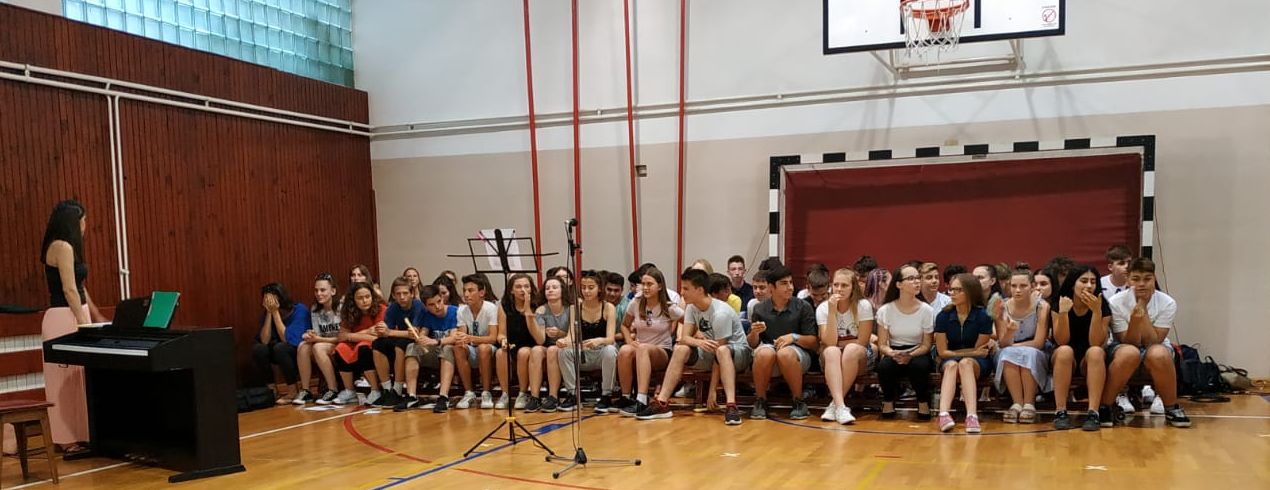 U utorak, 2.7.2019. dobili su svjedodžbe učenici osmih razreda. Već je tradicionalno uz taj događaj vezana svečanost koju su priredili učenici s razrednicama, a pozvani su učitelji, stručni tim školi škole i roditelji. Dostojanstveno i lijepo, kako priliči „maloj maturi“, uz pjesmu, ples, sviranje i filmove kojima su se prisjetili ovih osam godina života. I pokoju suzu. Zahvalili su se učiteljima koji su im ponudili znanje, svatko je ponio sa sobom koliko htio, mogao... Ravnateljica, prof. Jelena Ivaci zaželjea im je sreću, uspjeh i zdravlje u ime svih koji su ih učili. Podijelila je nagrade učenicama koje su sve godine školovanja završile s 5.00, pohvalnice za uzorno vladanje i odličan uspjeh i sportske rezultate na Državnom prvenstvu. Razrednice Yoska Jurić, Zvijezdana Markoljević i Višnja Jaklin podijelile su svjedodžbe. Višnja Jaklin